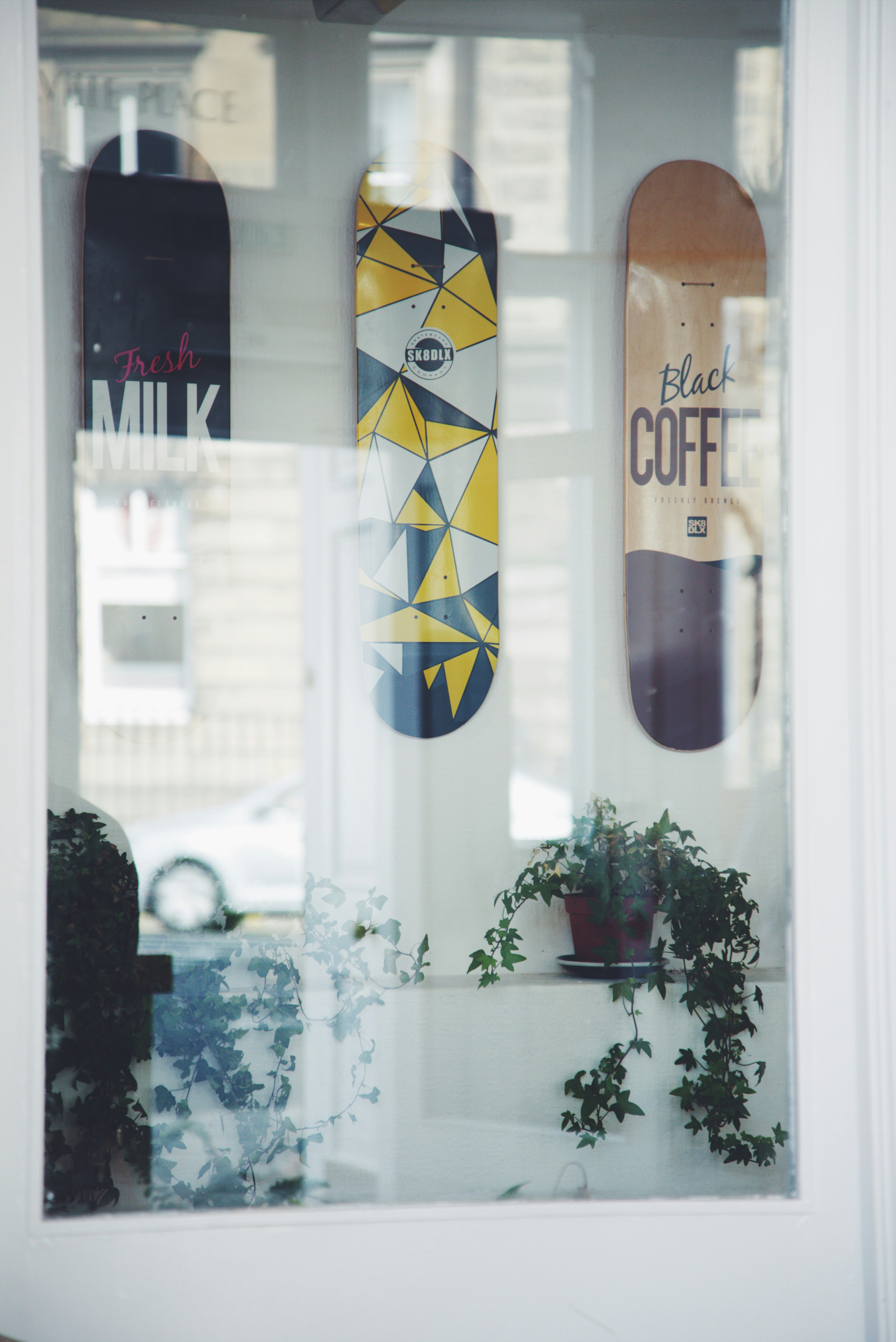滑板、植物、倒影、窗户、商店、装饰、溜冰、室内、标志、陈列、植物、葡萄、盆栽、茶托、盆栽、广告、购物、常春藤、爱丁堡、苏格兰