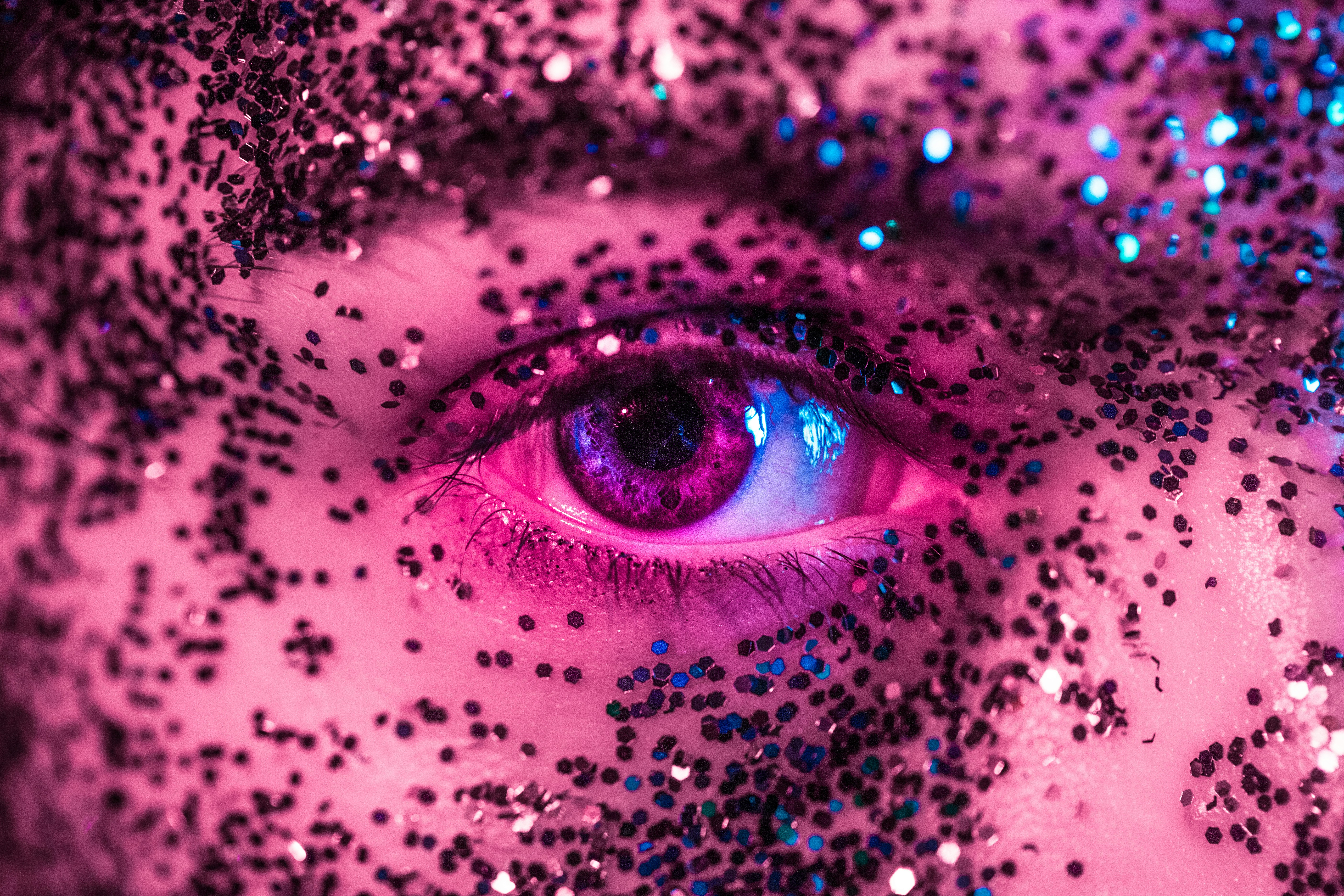 眼睛,闪烁,近视,粉红色,瞳孔,眼球,深沉,肖像,多彩,艺术性,创造性,粉色皮肤,粉色眼睛,脸,被闪烁,眼睛,银河系覆盖