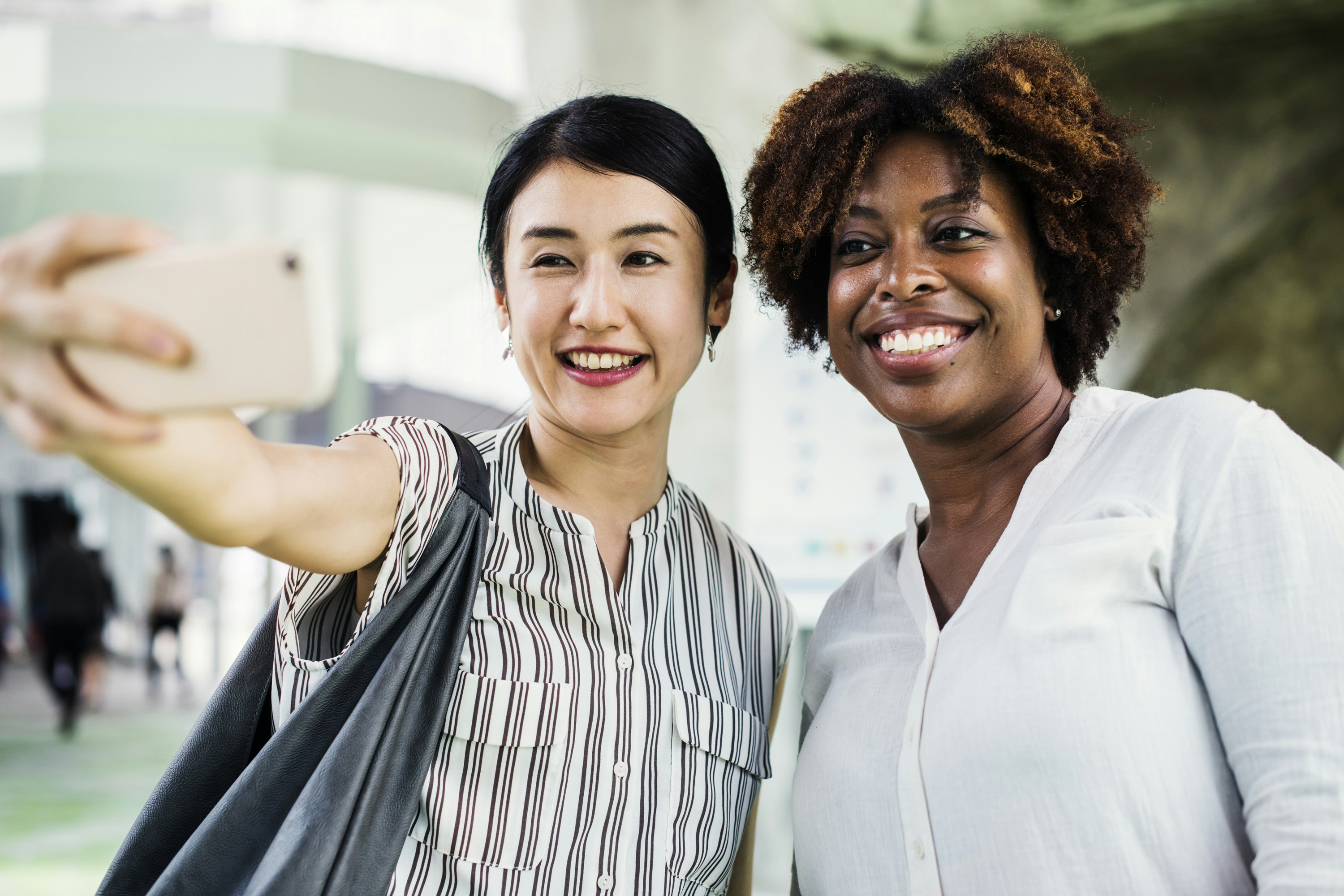 人物,肖像,朋友,自私,微笑,女人,在一起,微笑,智能手机,电话,网络,幸福,种族,非洲裔美国人,非洲人,美国人,亚洲人,无线,聚会,电话