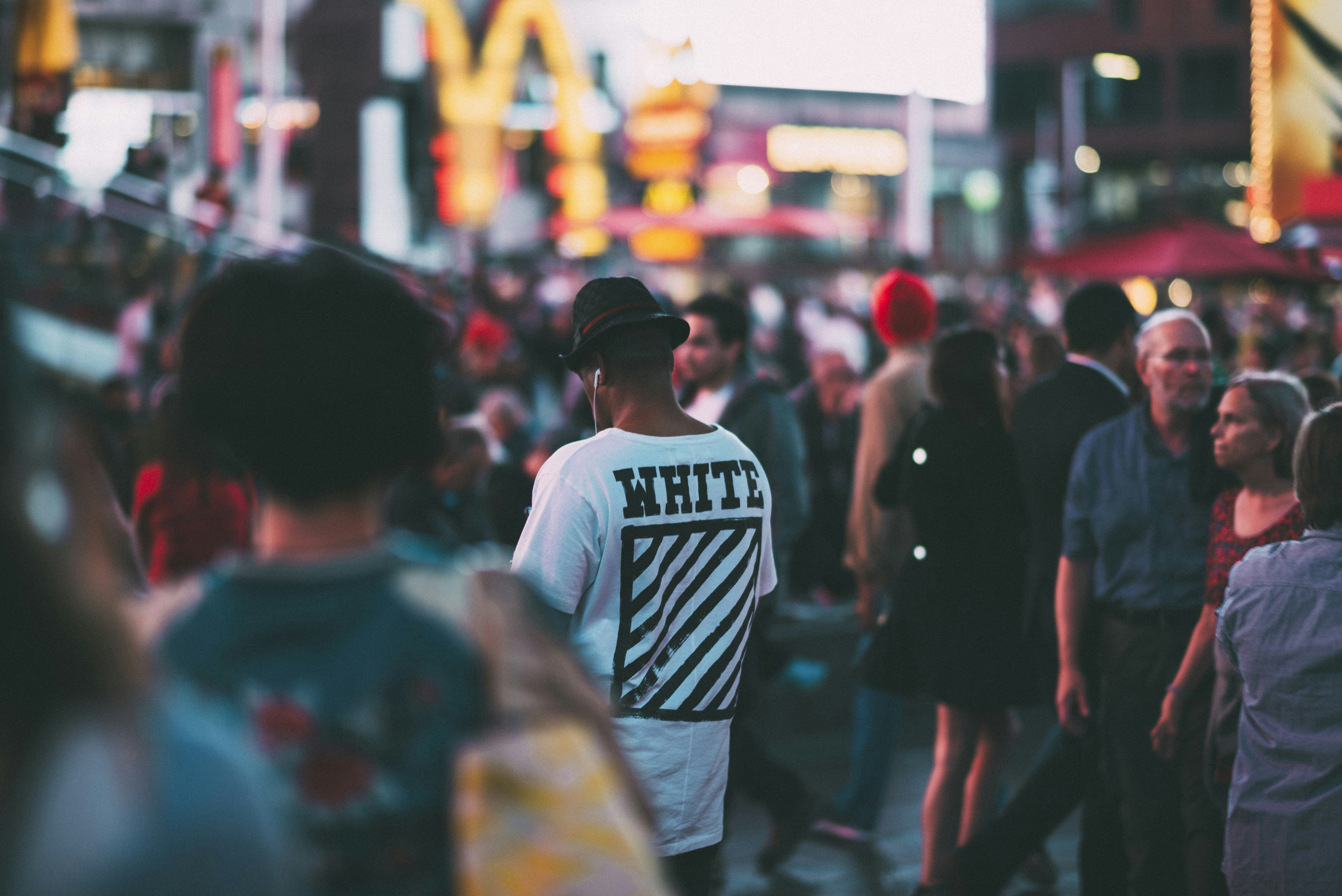candid,crowd,street,city,busy,bokeh,people,headphones,crowded,times square,blurry,prime lens,walking,pedestrian,rush hour,rushhour,1.4,new york,black,white