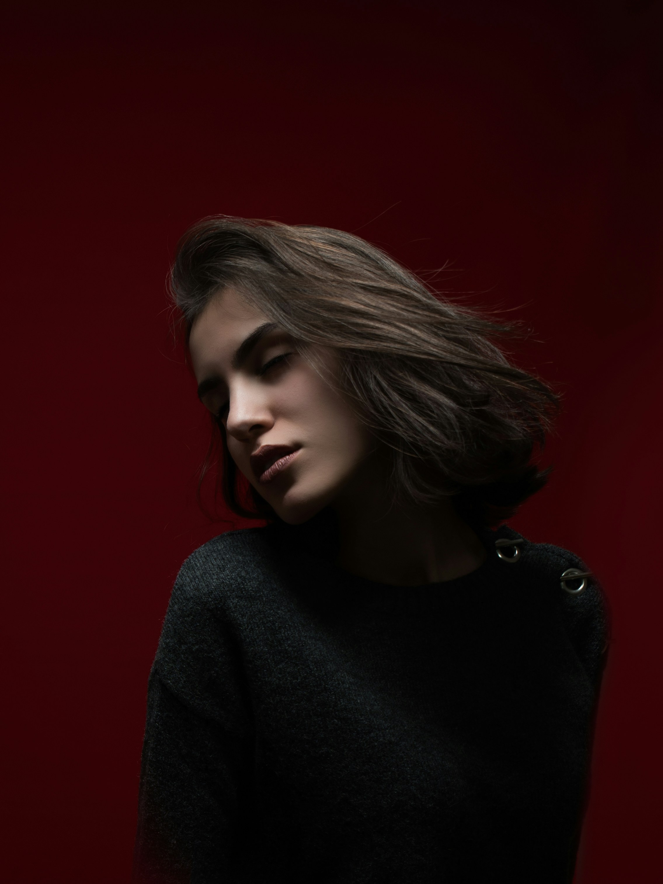 女性,肖像,模特,黑发,跳线,毛衣,黑色,不飞溅,希望,感觉,海尔,时间,生命,眼睛