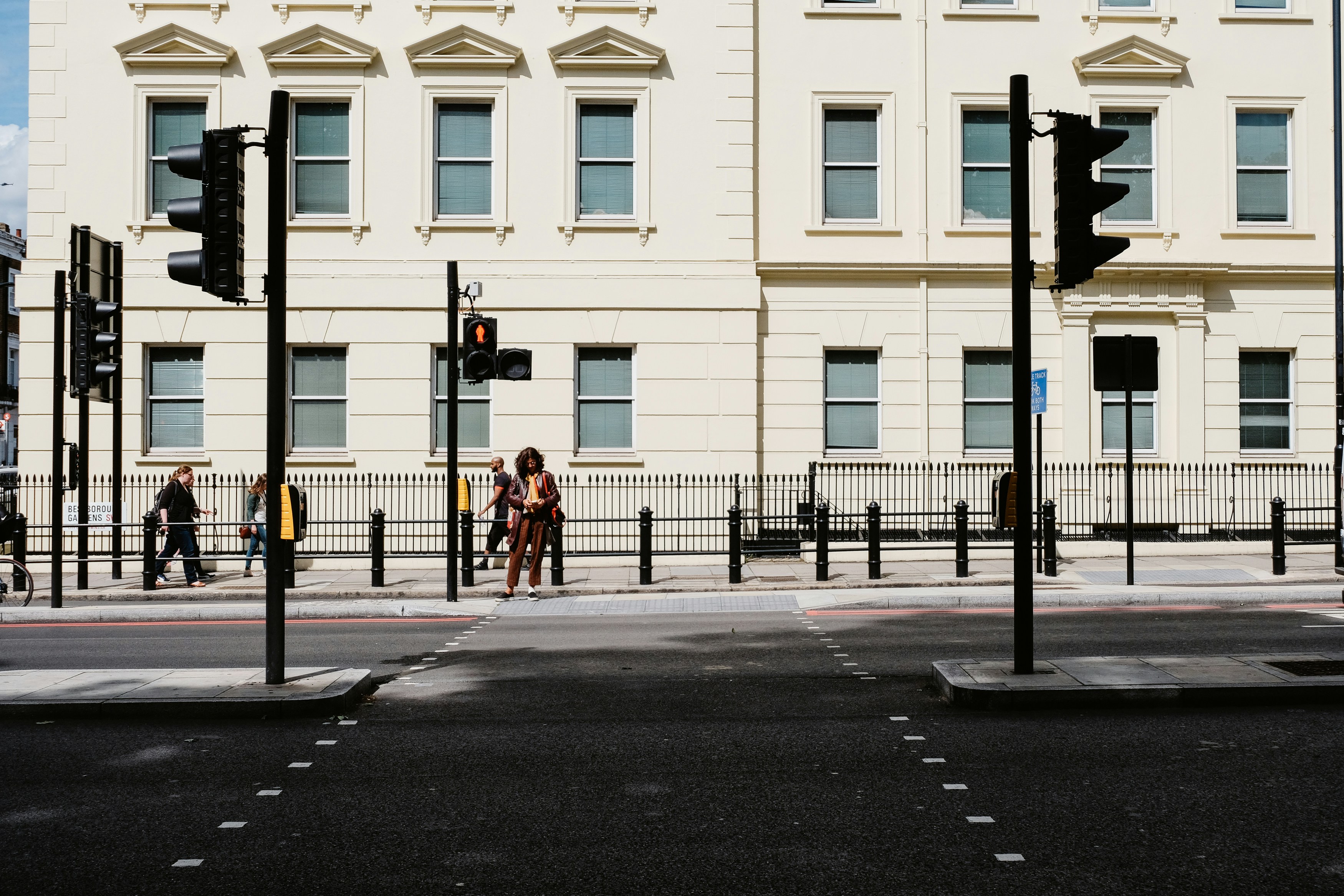 街道,十字路口,道路,灯,红绿灯,停车标志,人行道,人行道,窗户,混凝土,砖,标志,建筑物,人,交通灯,房子,城市,伦敦,沥青,户外