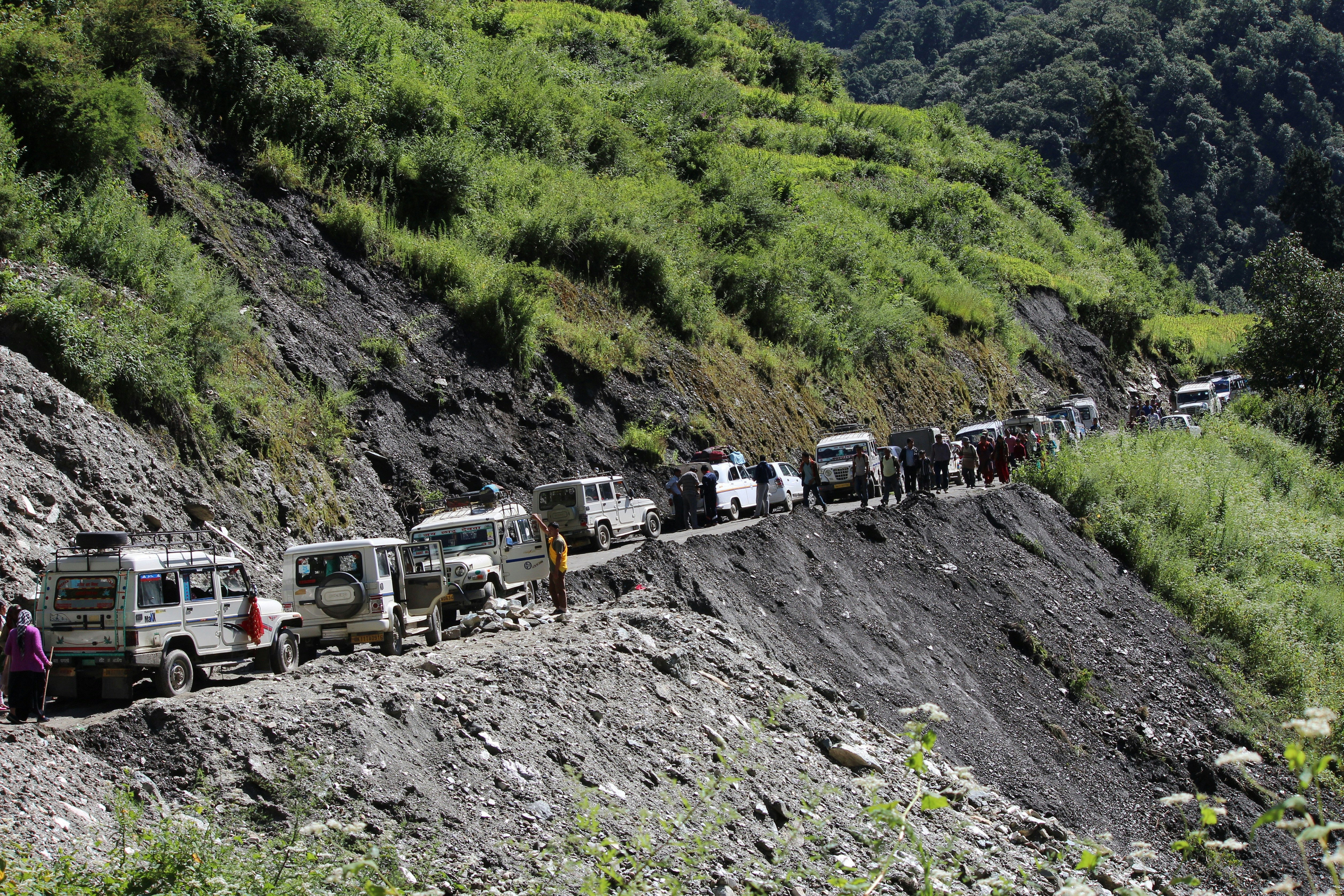tree,outdoor,traffic,car,truck,dirt,hill,grass,mountain,uttarakhand,carretera de montaña,vehículo,caravana,caravana de vehículo