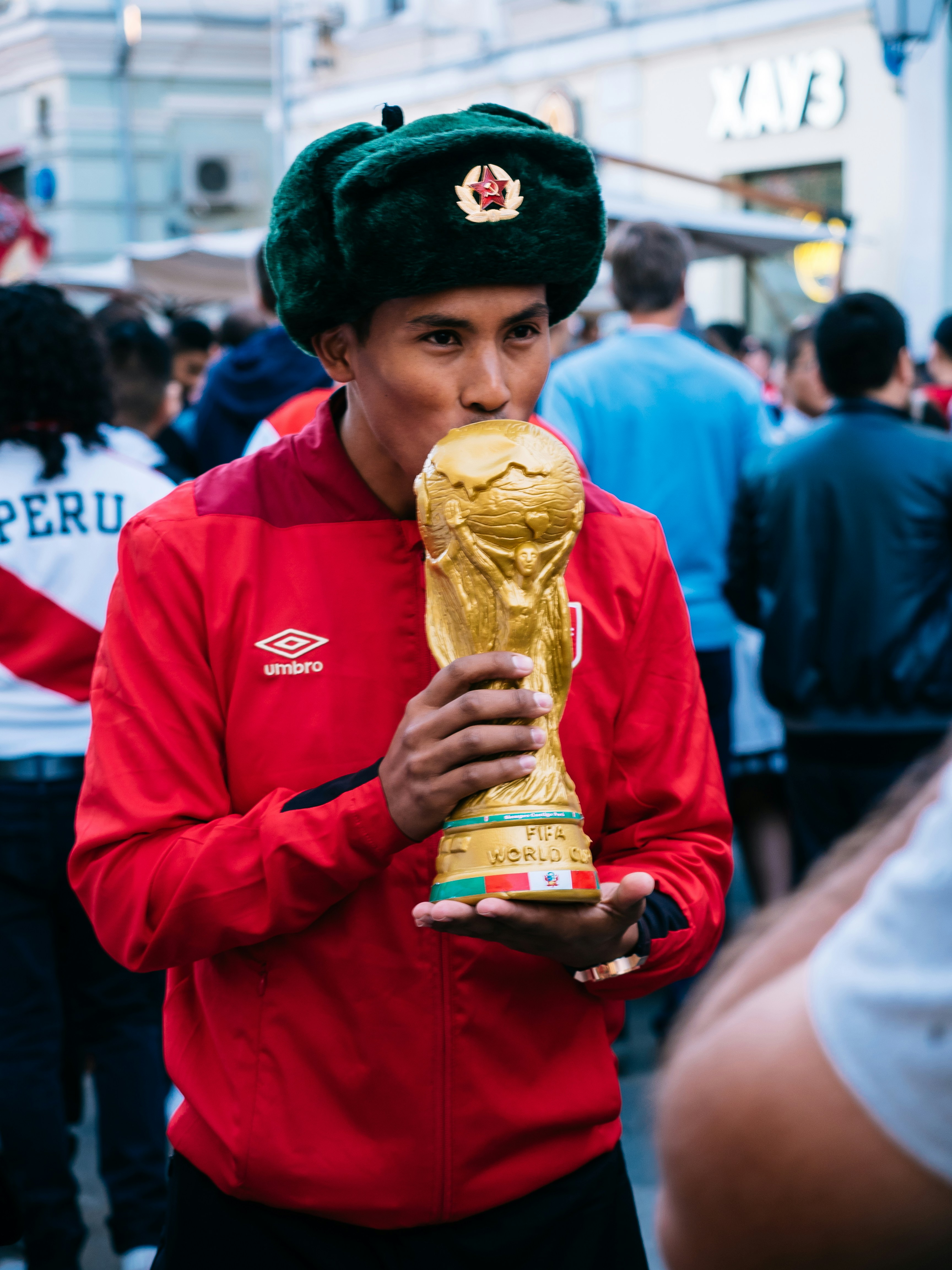 奖杯,世界杯,国际足联,足球,人群,俄罗斯人,冠军,2018年,杯,亲吻,球迷,欢呼,莫斯科,世界,足球,奖项,情感,秘鲁人,事件,俄罗斯