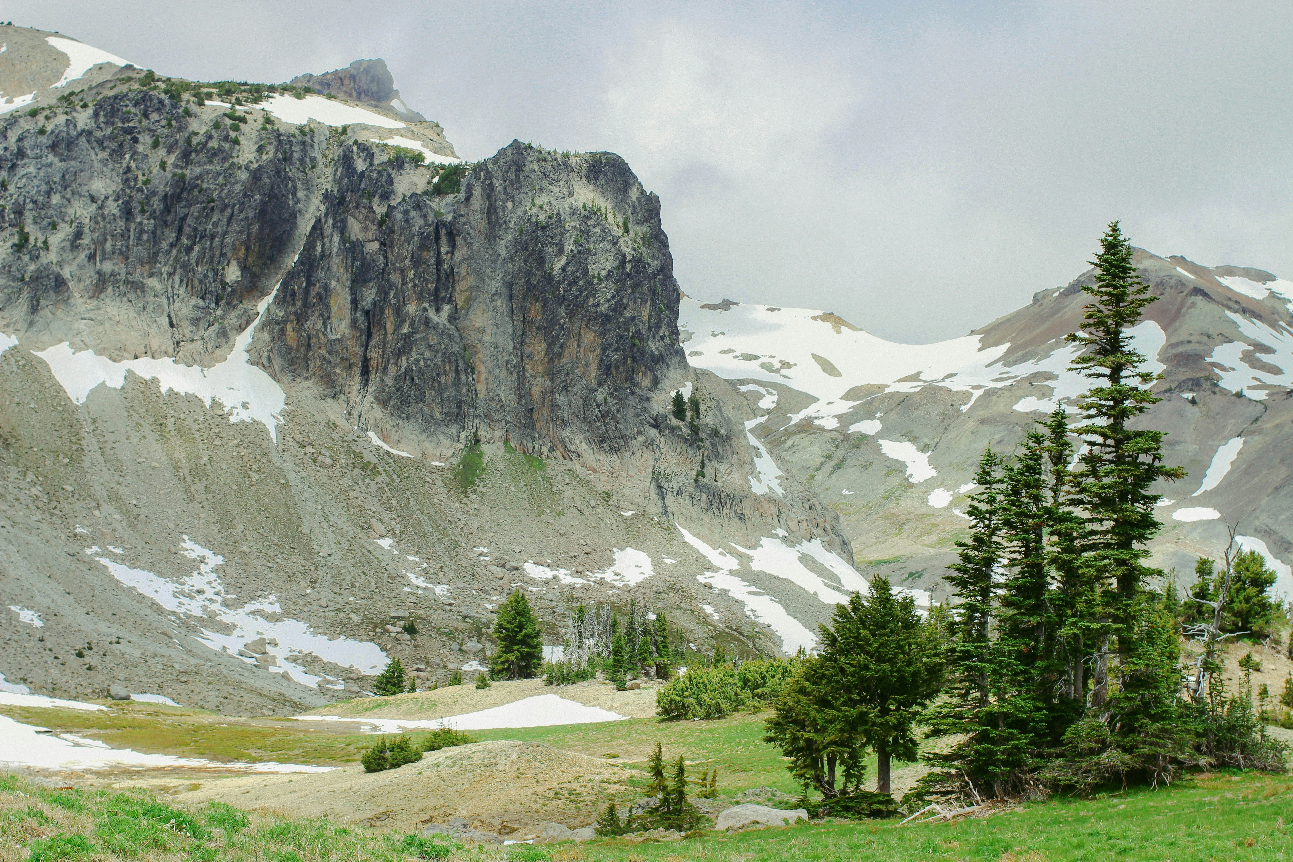 山、石、峰、营、石、水、雪、树、土、云、天、灰、白、绿、营地、露营地、露营地、大气、薄、高