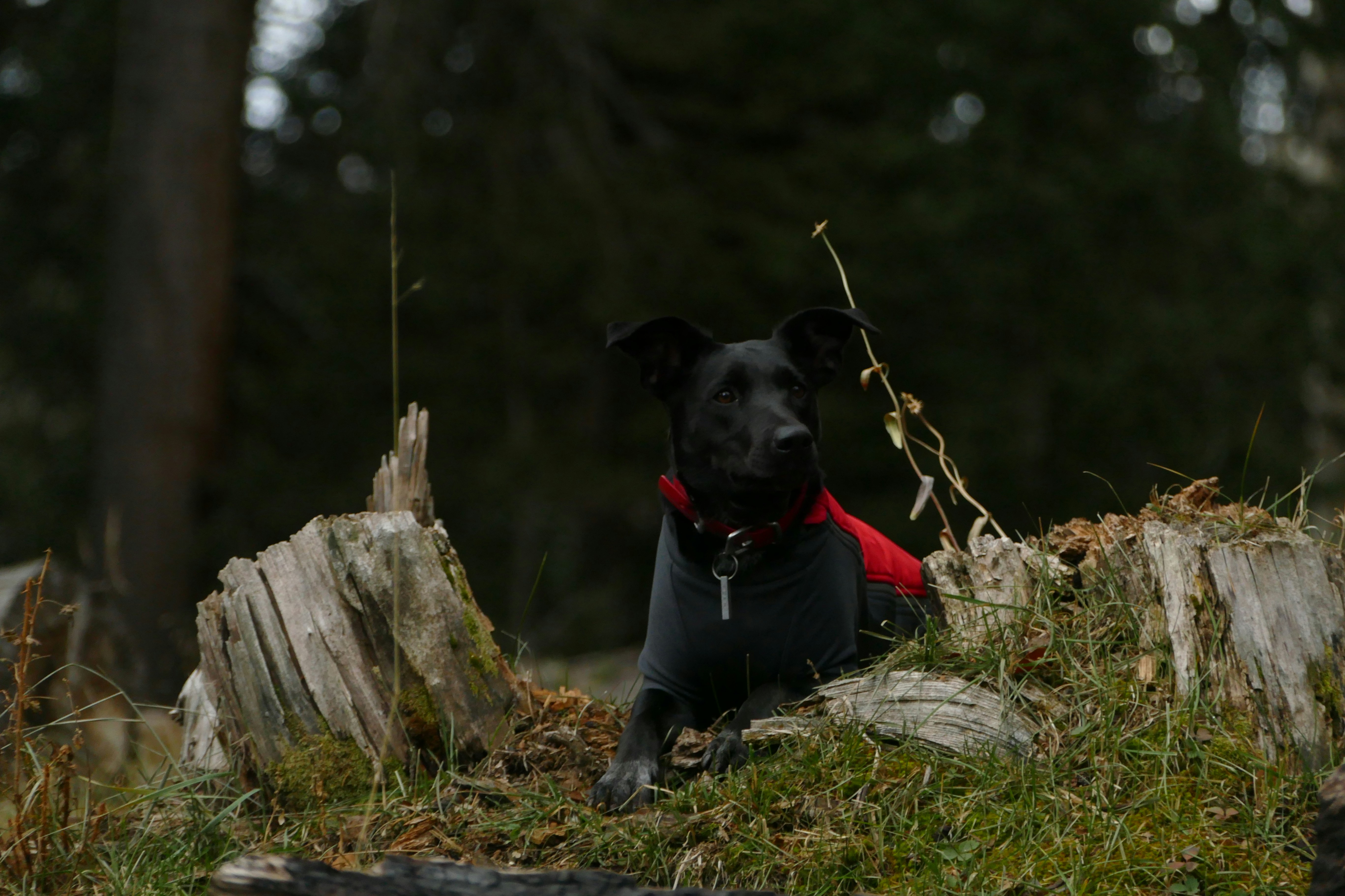 dog,black,green,man's best friend,canine,nature,tree,dog walk,bandana,animal,fall,photography,pink,plant