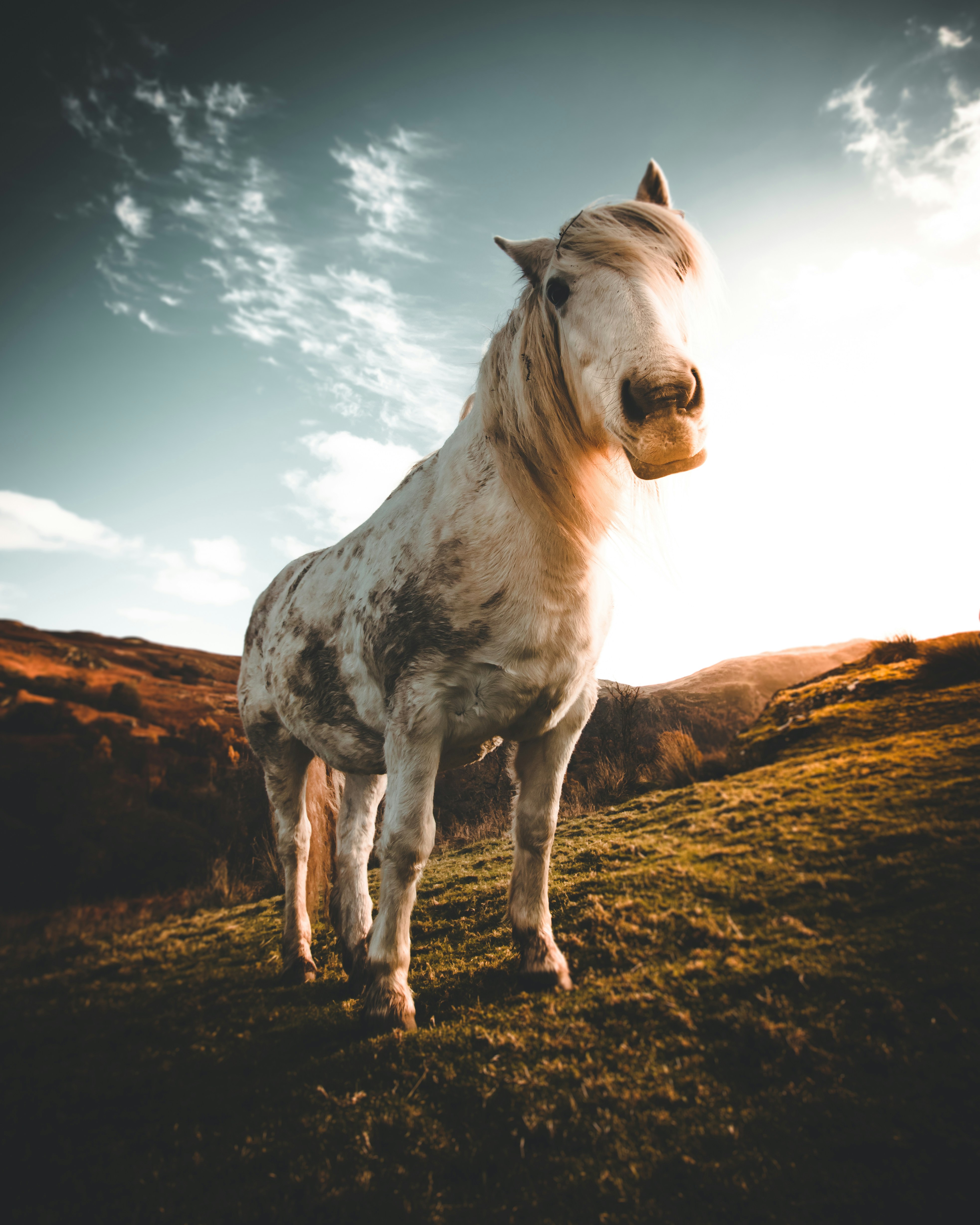 马,山,草,田野,天空,白马,自然,野生动物,动物,景观,湖区,英国,壁纸,土地