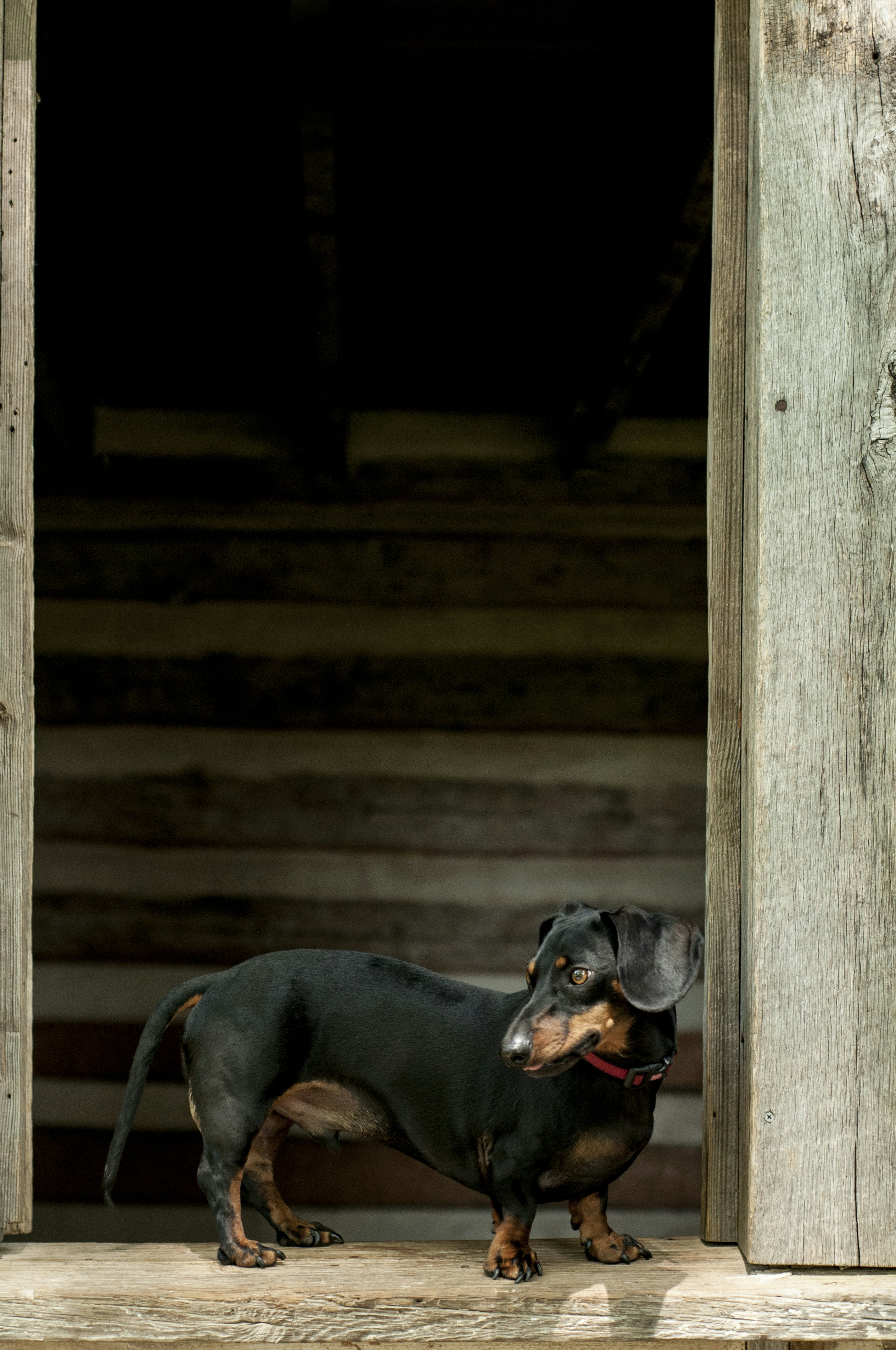 韦纳犬,狗,巴尔克犬,侧视,棕色的眼睛,木门,入口,门廊,木制的,户外的,宠物肖像,腊肠,小狗,小狗,鹦鹉,热狗,鹉鹉,鹉