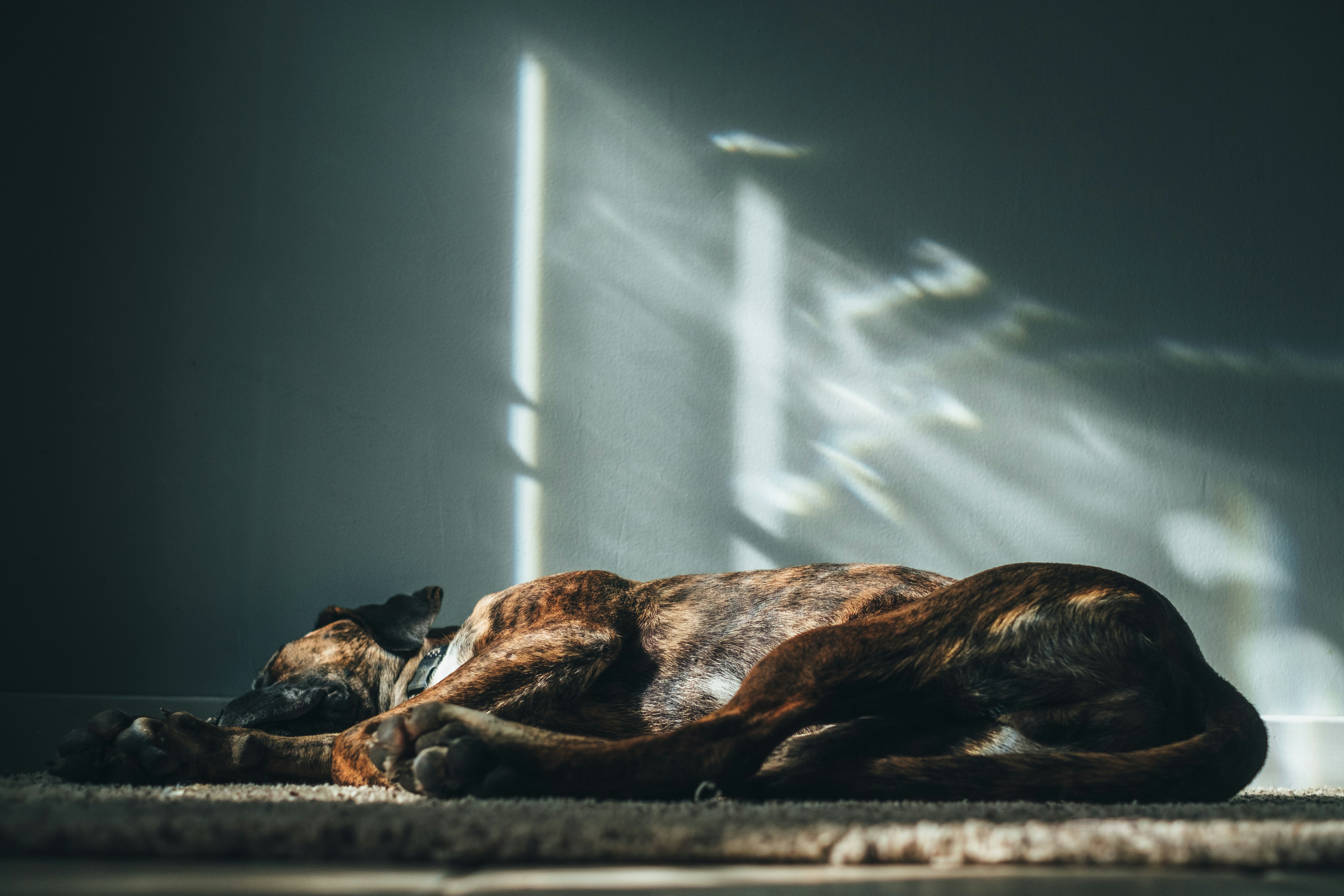 狗、狗、阳光、睡觉、地毯、地毯、躺下、阳光、家庭休息、休息、睡眠、动物、猎犬、午睡、下午、家、倒影、影子、阳光、小狗
