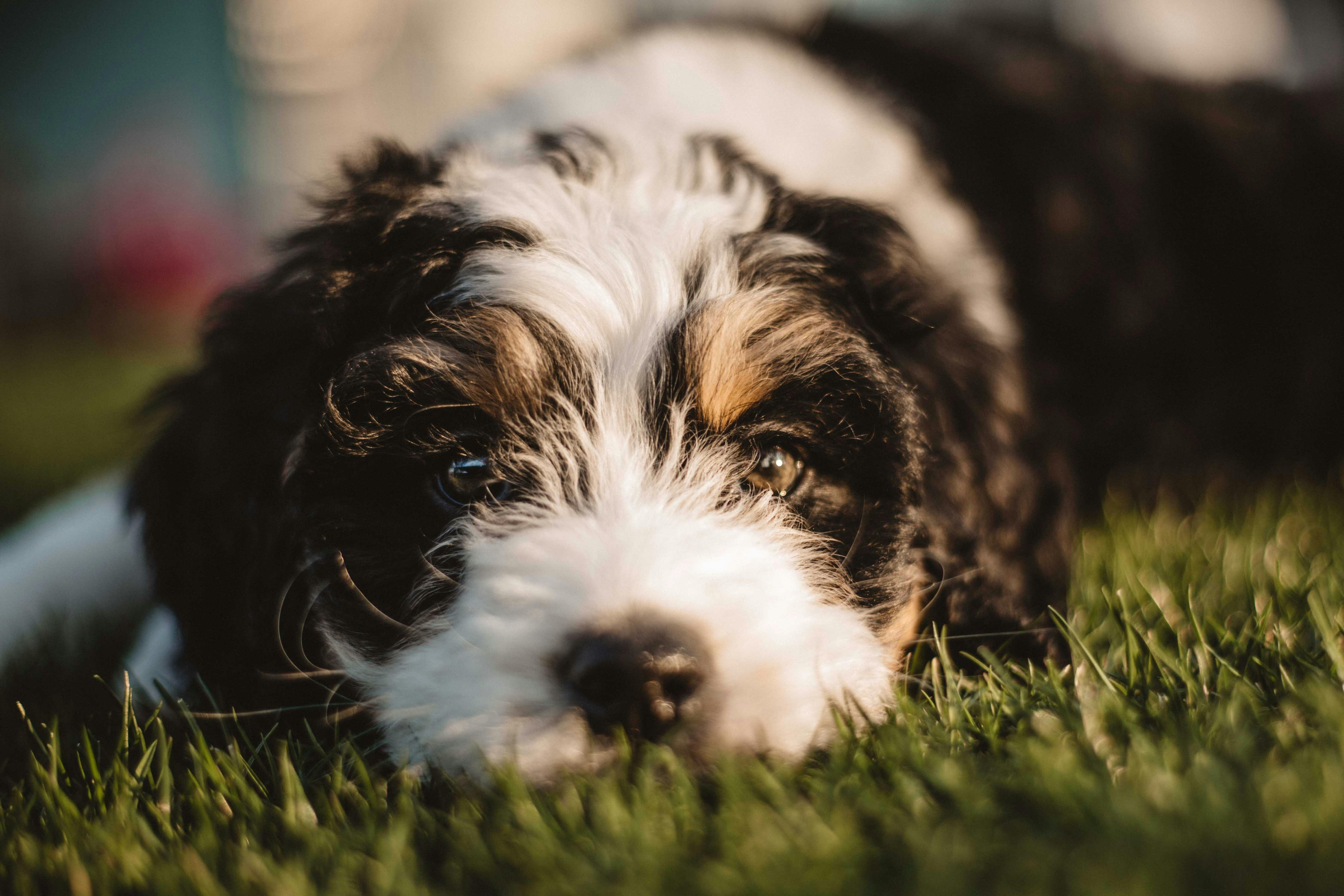 颜色,草,卷曲,可爱,狗,小狗,绒毛,小狗,混合,贵宾犬,伯尼道德尔,伯纳斯山犬