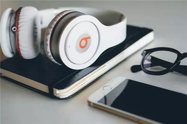 白色耳机苹果手机黑框眼镜黑色笔记本