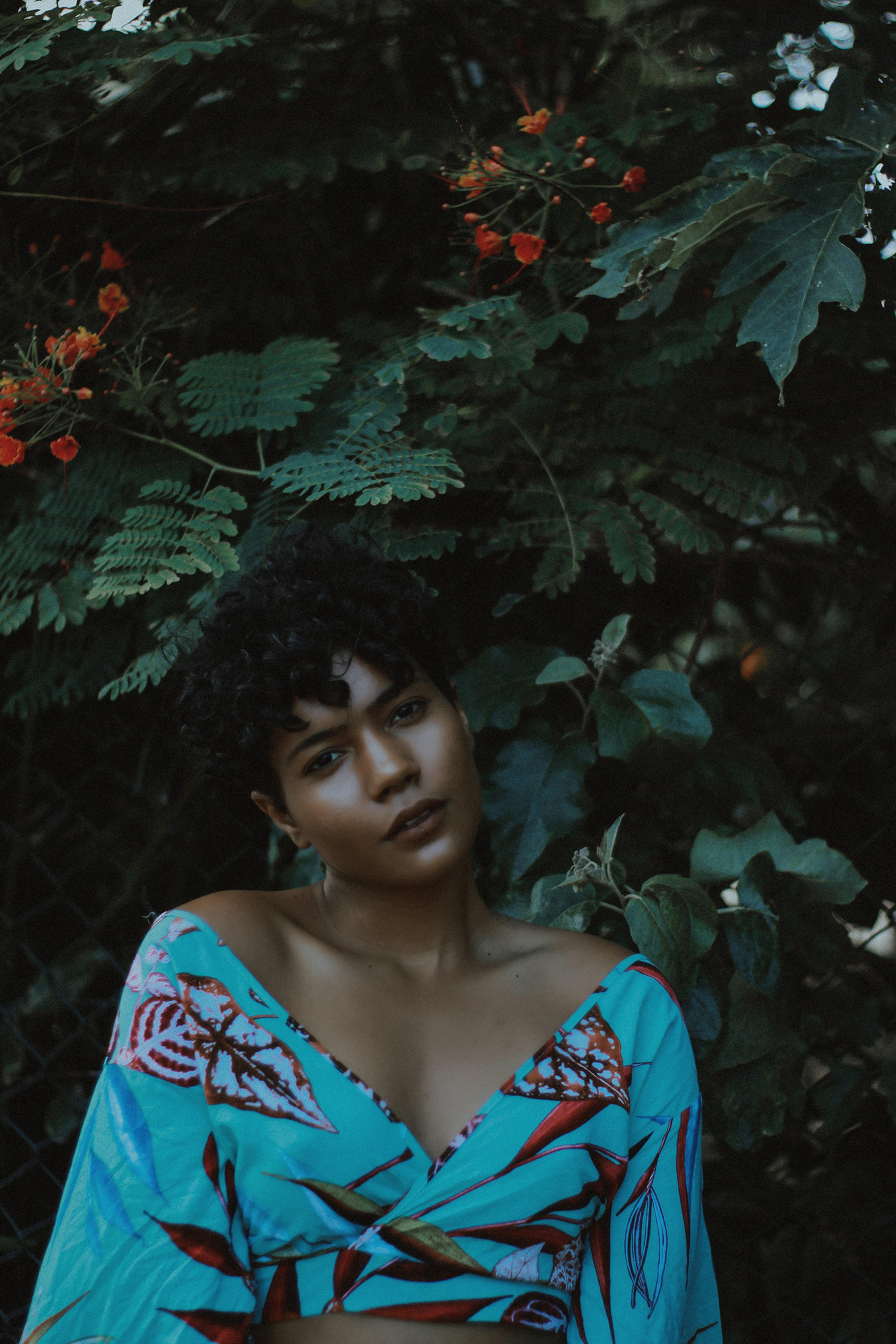 女人,树叶,站在树叶中,模型,风格,脸,不浮雕,感觉,钵,摄影师,巴西,摄影,复古,地球人,人像,肖像,肖像,卷发,外表,肖像