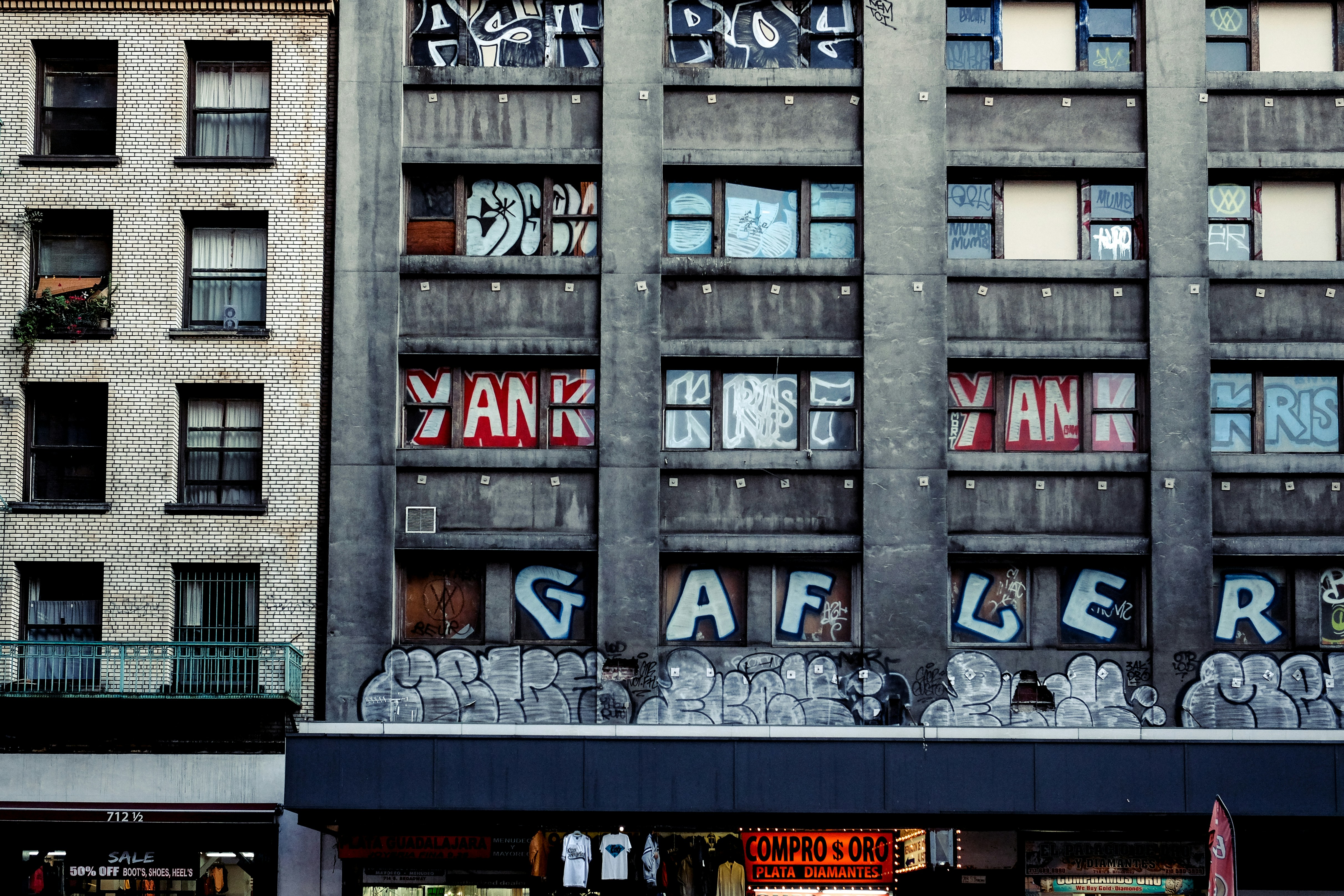 涂鸦、破坏公物、工业、废弃物、街头艺术、建筑、城市、城市、城市景观、旧建筑、废弃建筑、旧、灰、混凝土、溜冰鞋