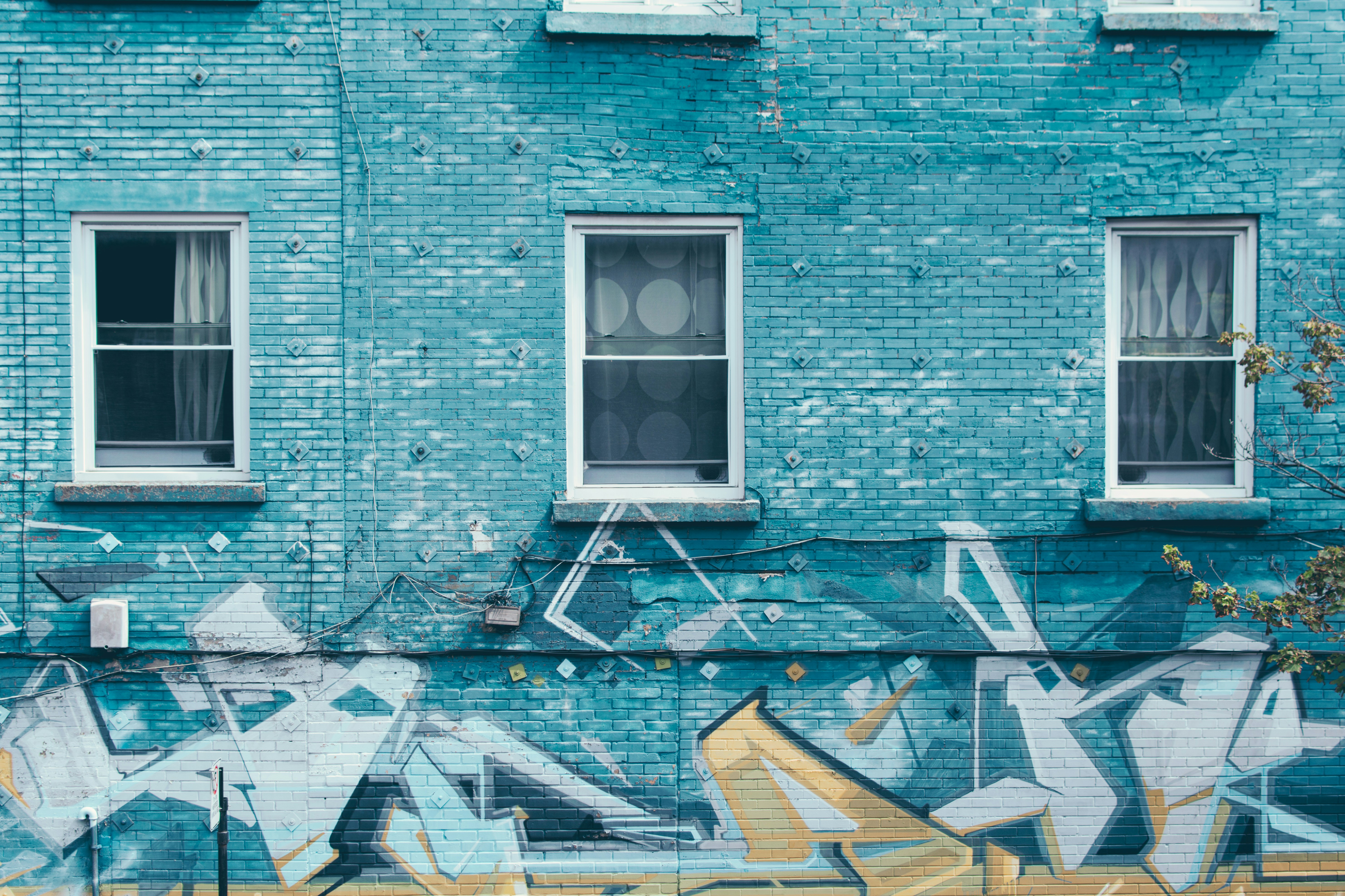 墙,砖,建筑,涂鸦,窗户,玻璃,窗帘,线索,框架,城市,窗户,户外,街道,艺术家,背景,石头,舒适,舒适,明亮,光线