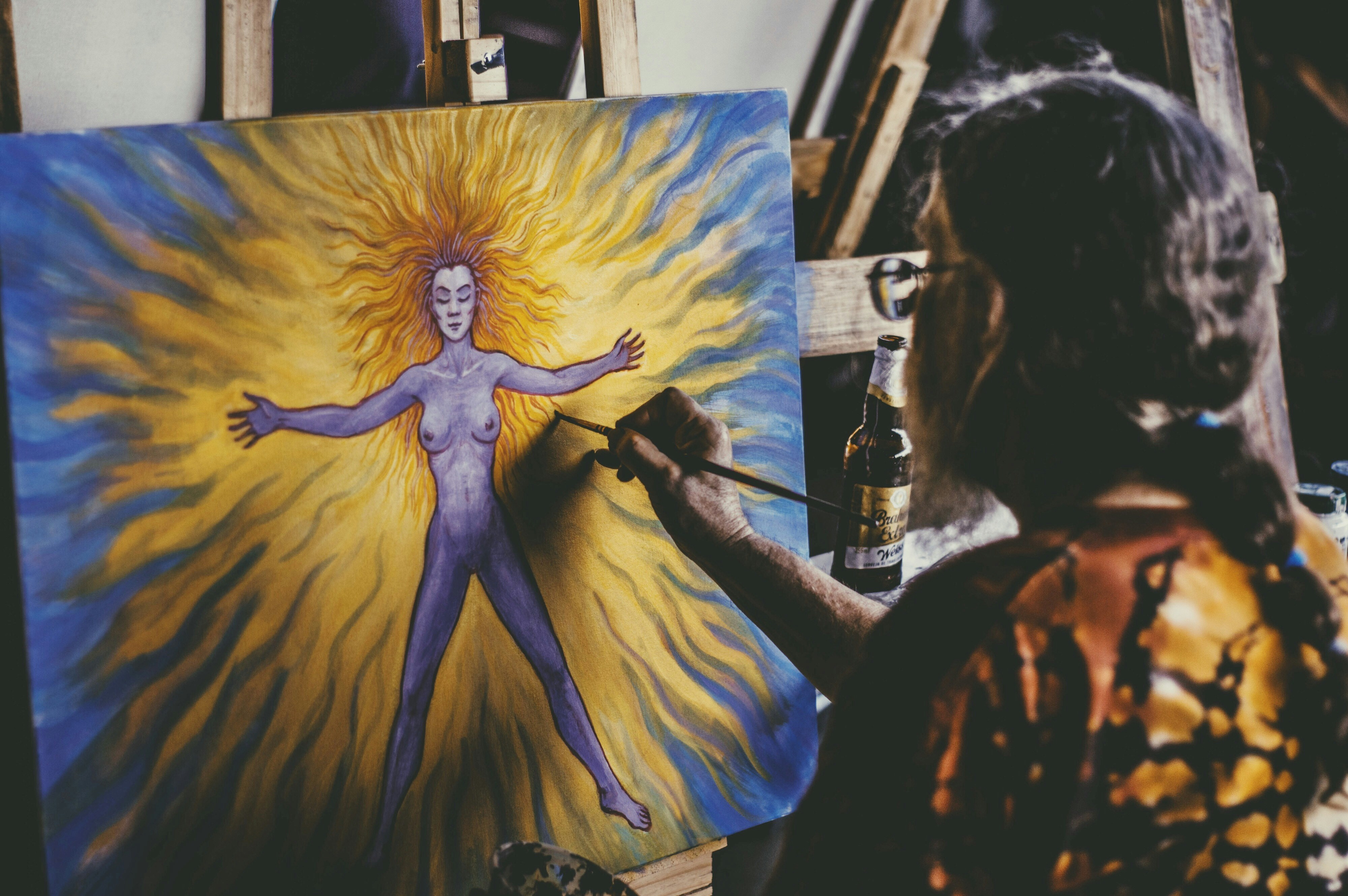 绘画,艺术家,手臂,创作,纹身,植物,人,设计,画笔,画笔,画笔,身体,窗光,自然光,桌子,创意,创造力,创造力,墙壁艺术,生产力,风格