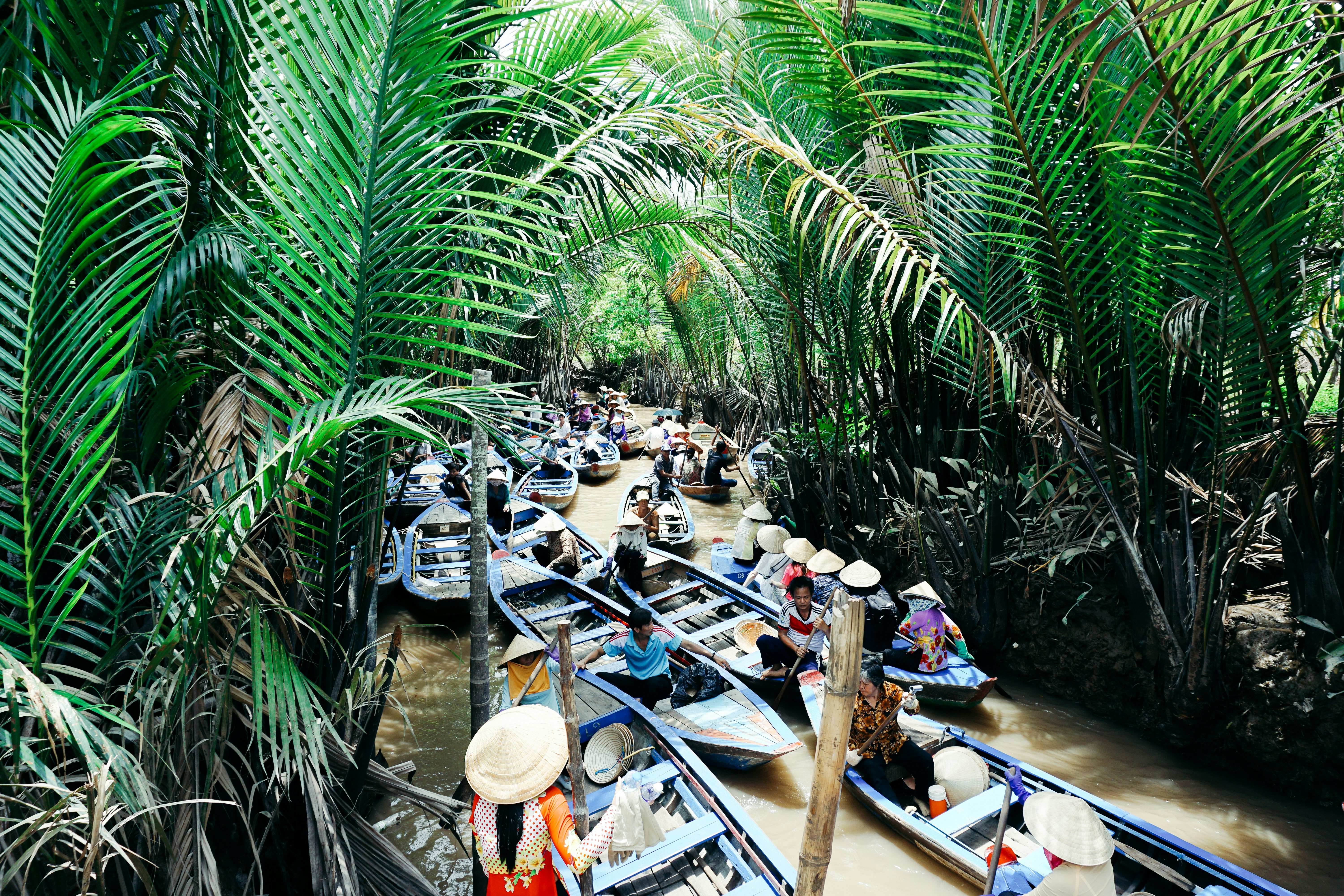 河,独木舟,人群,人,船,旅游,户外,风景,文化,人,旅游,旅游,探险,树,棕榈,阿苏,越南,湄公河三角洲