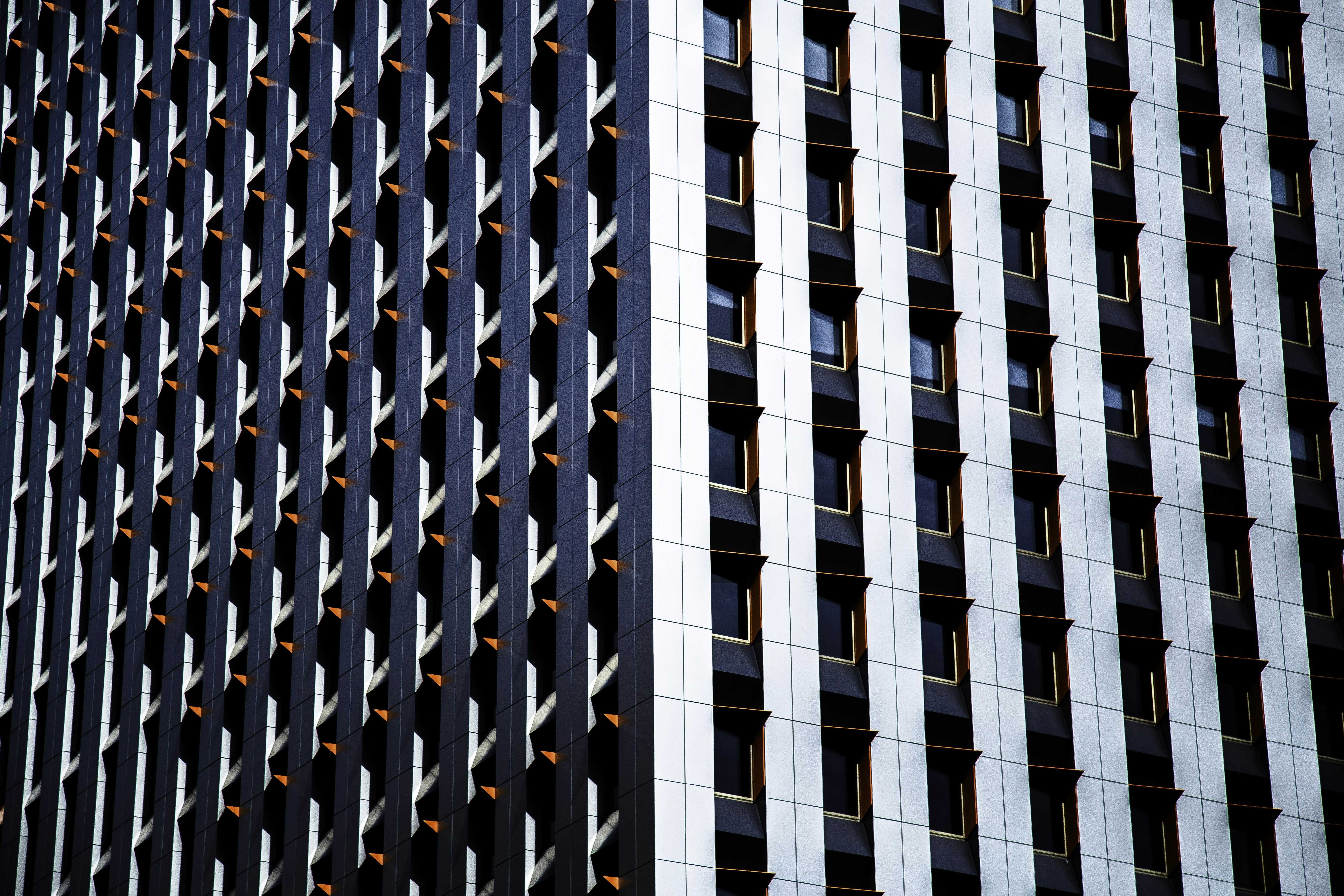 建筑,建筑,摩天大楼,城市,天空,对称,几何,蓝色,无限,天窗,建筑,深度,抽象,几何,外部