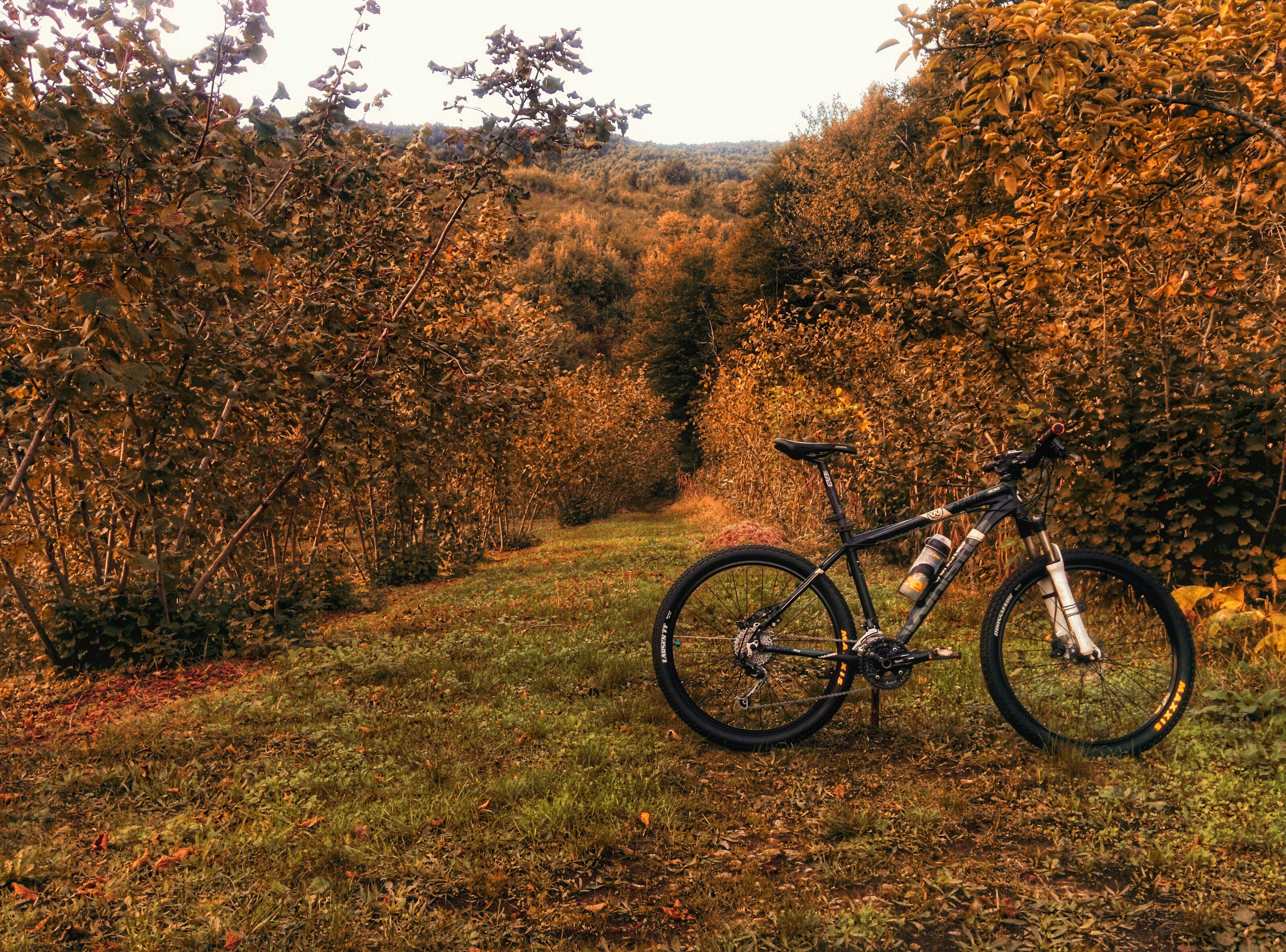 秋天,秋天,森林,树,自行车,自行车,山地车,户外,生活方式,休闲,风景,树叶,红叶,自然,橙色