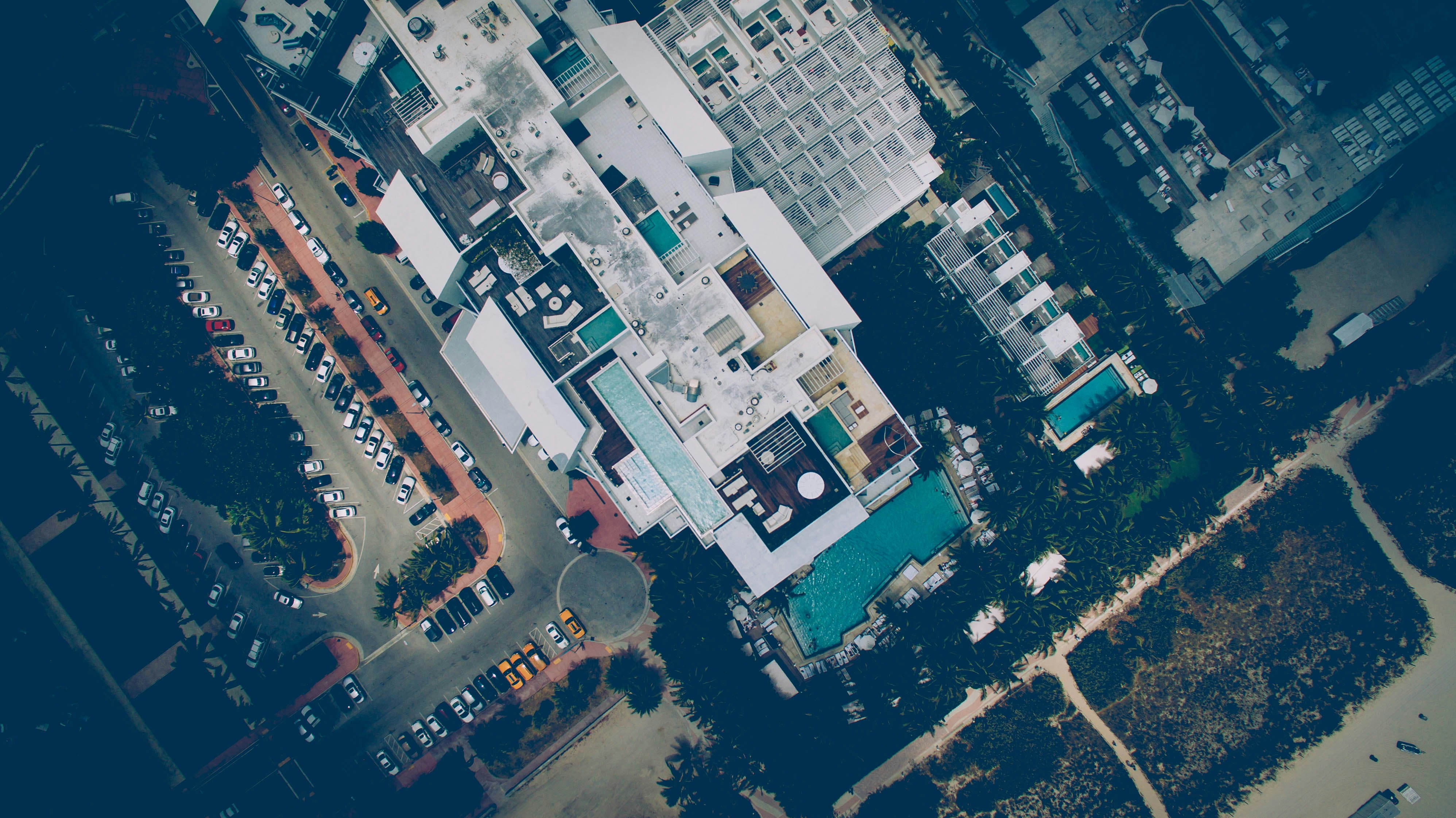 迈阿密海滩屋顶阳台的无人机鸟瞰图