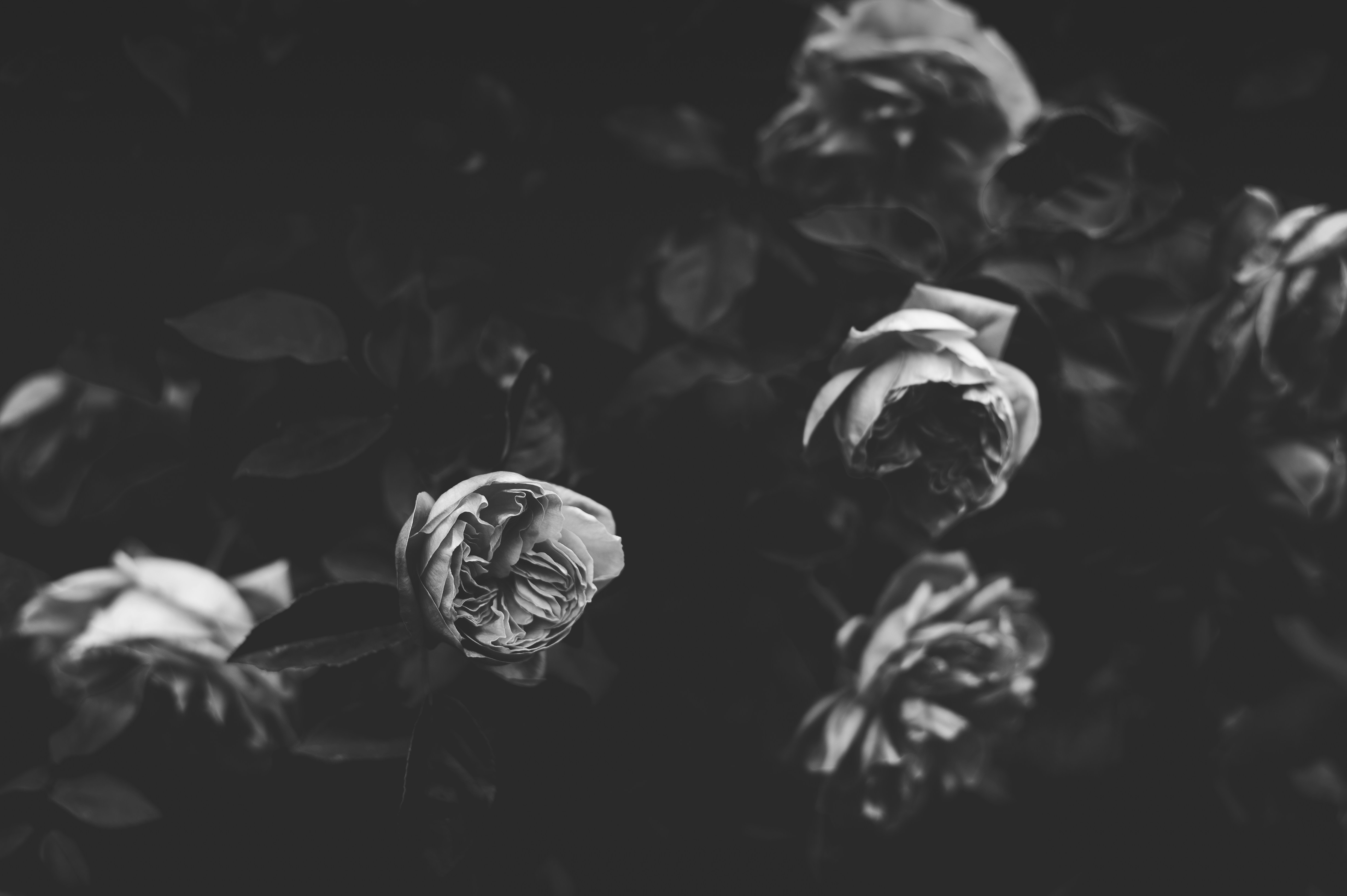 玫瑰布什,单色,黑白相间,绽放,绽放