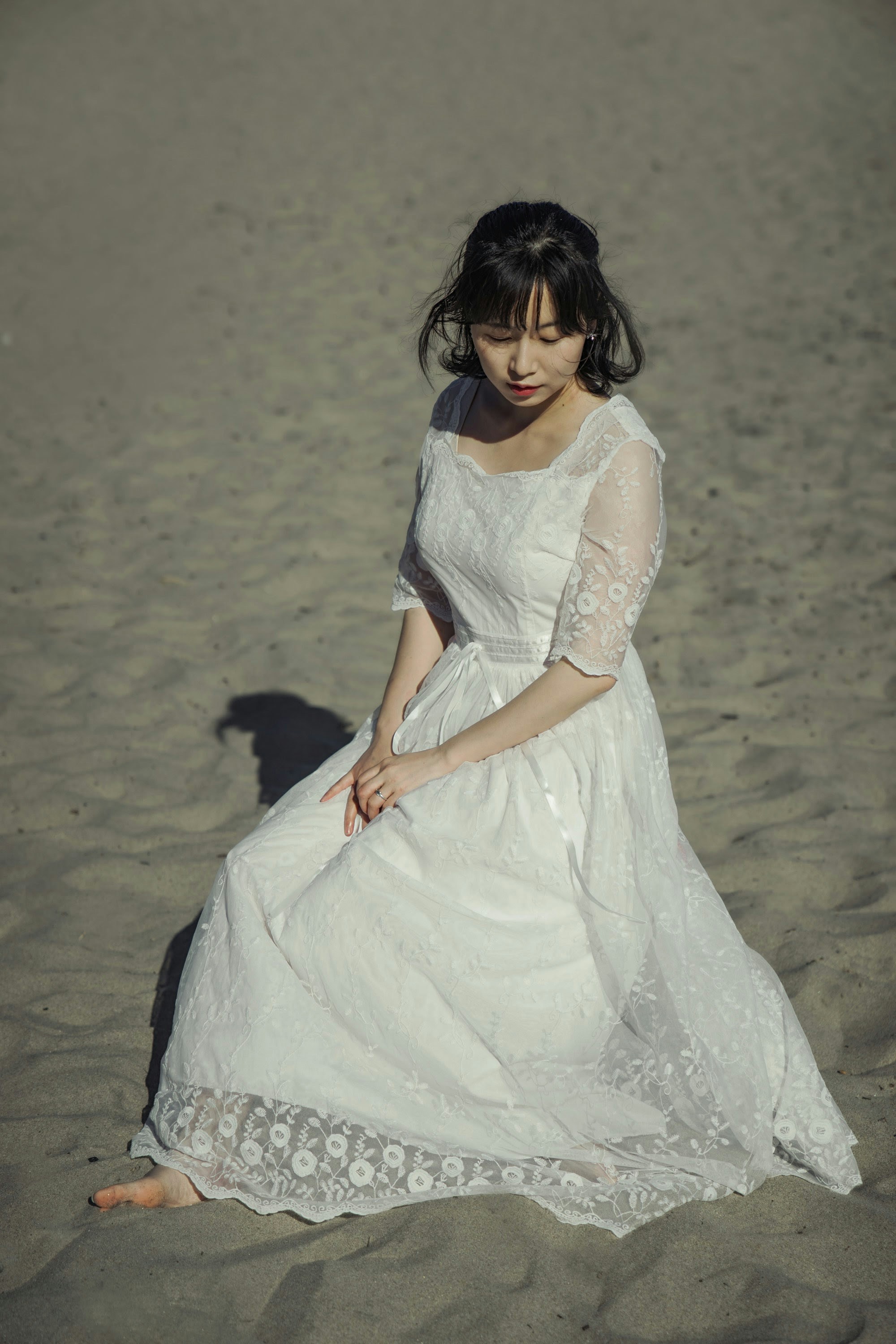 女人,女人,新娘,沙滩,沙滩,影子,白色连衣裙,画像,模特,日落