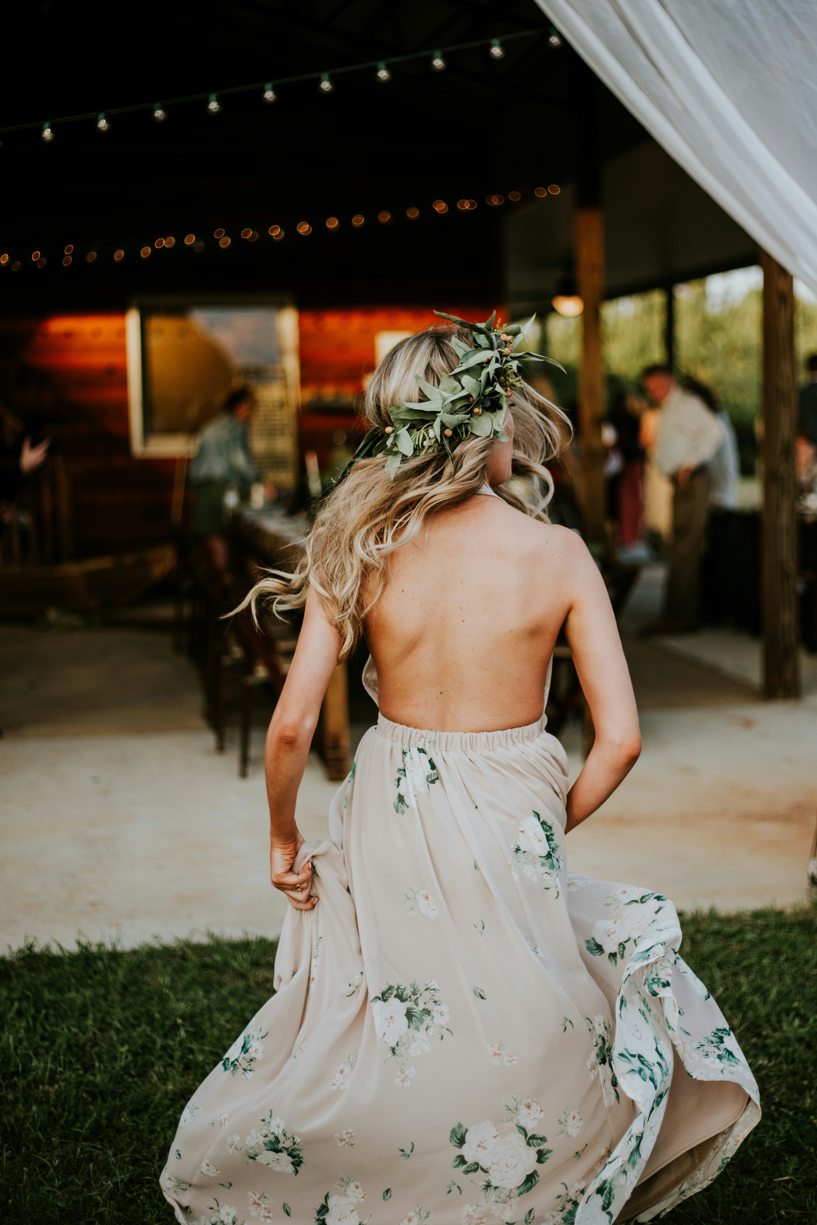 服装、模型、花冠、伴娘、旋转、运动、绿色、女王、雅斯女王、穆穆婚礼、结婚季节、活动、草地、草坪、女孩、爱情、王冠、金发、花朵、女人