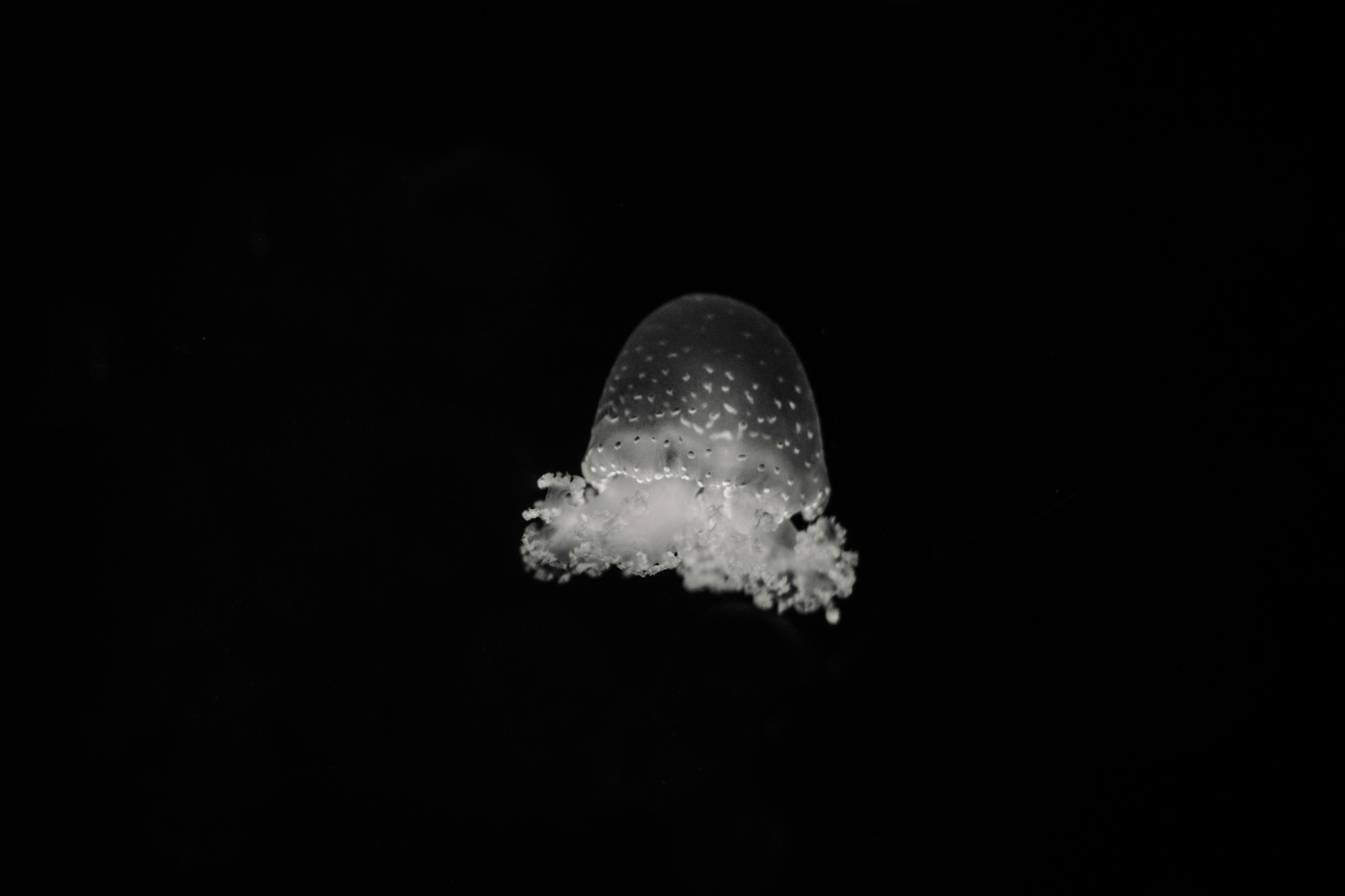 海蜇,生物,海洋,水,动物,海洋,水下,黑白,黑,白,光,游泳,生命,孤独,独处,圆顶,斑点,褶皱,水生,海洋生物
