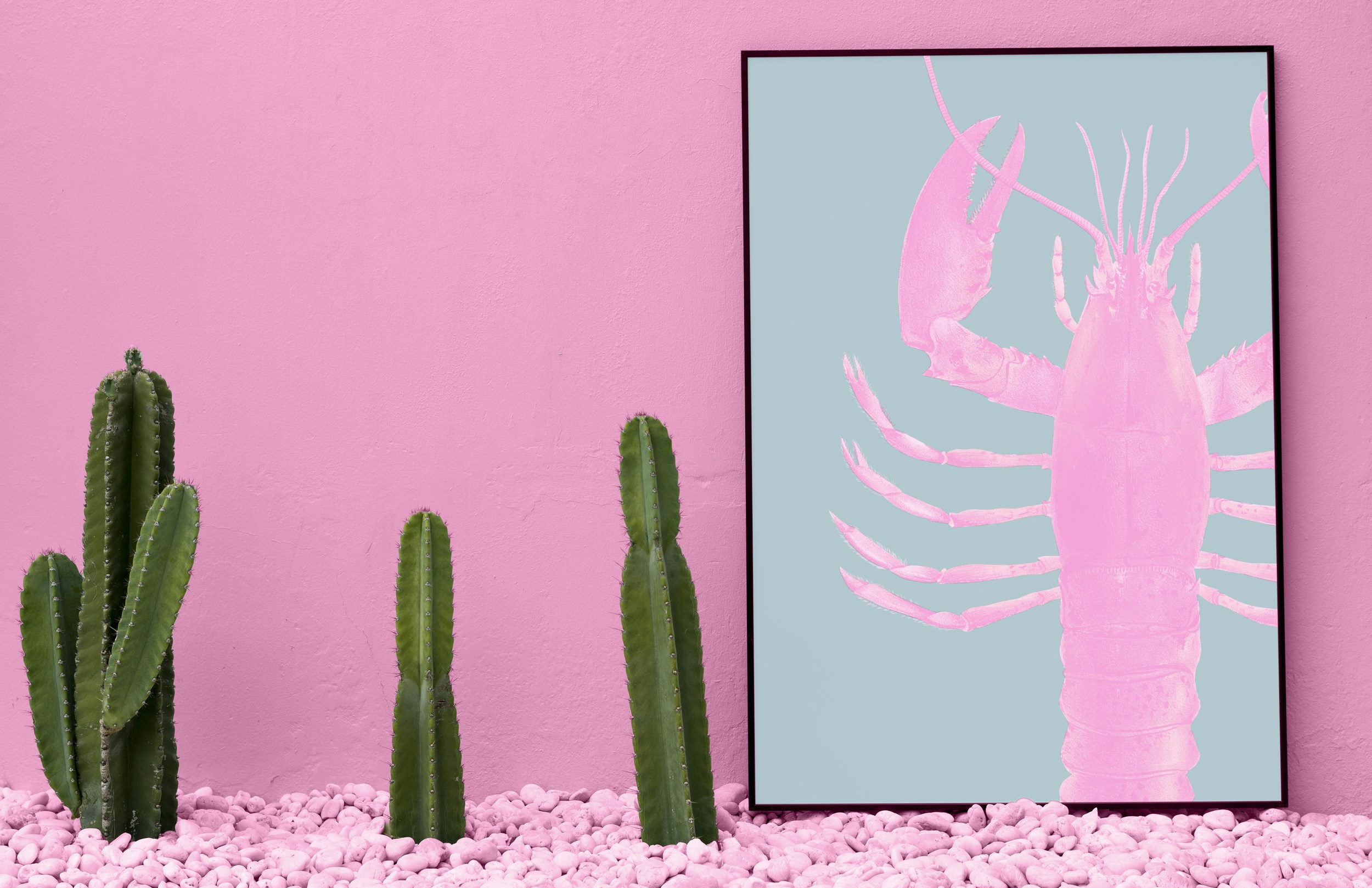 仙人掌、粉墙、壁画、绘画、龙虾、家居装饰、设计空间、虾、生命、海洋、白板、标签、空间、展示、粉色、框架、图片、模型、板、纸