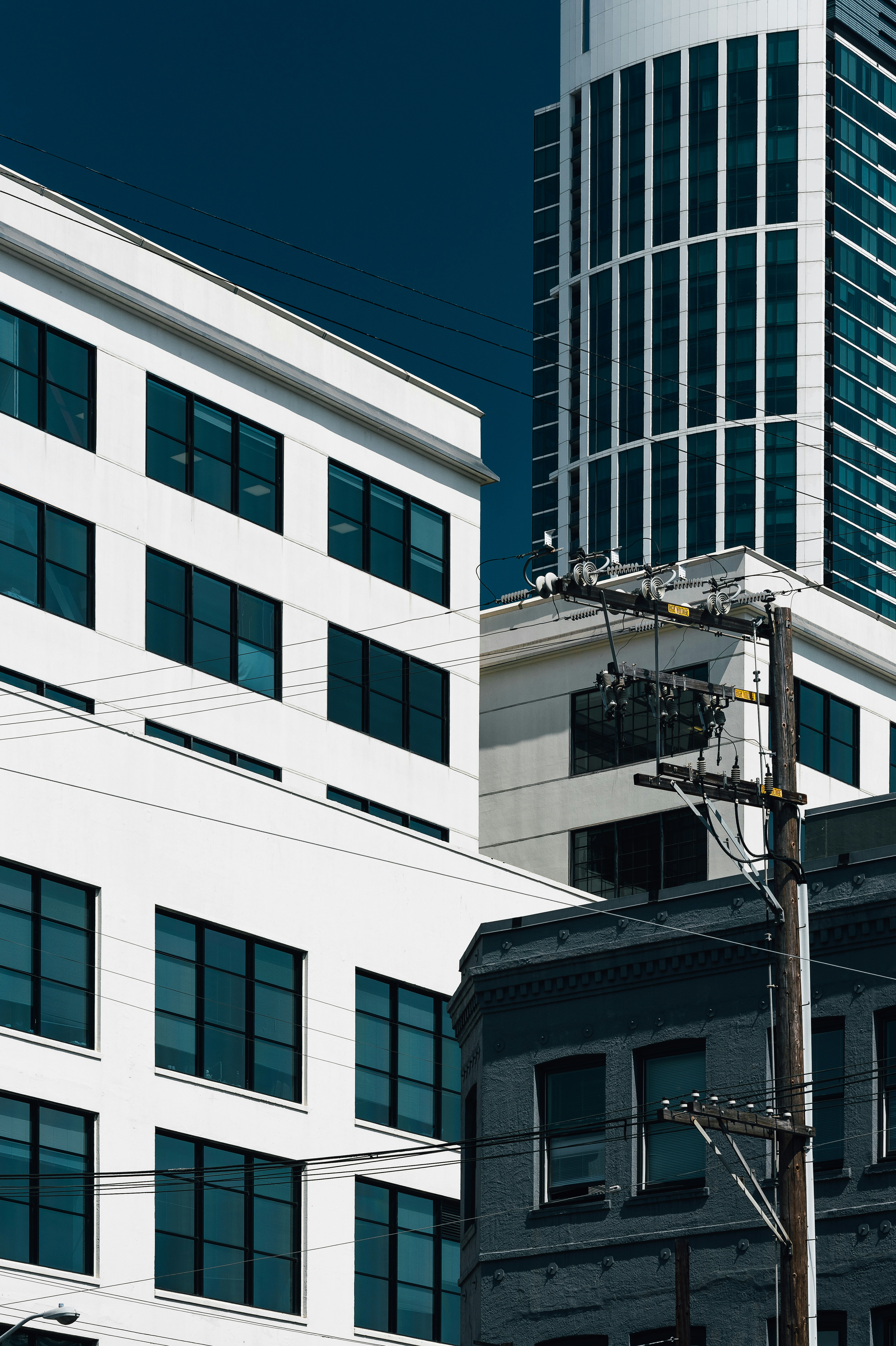 城市景观,城市,窗户,建筑,蓝色,天空,电力线,电力线,高压,电力