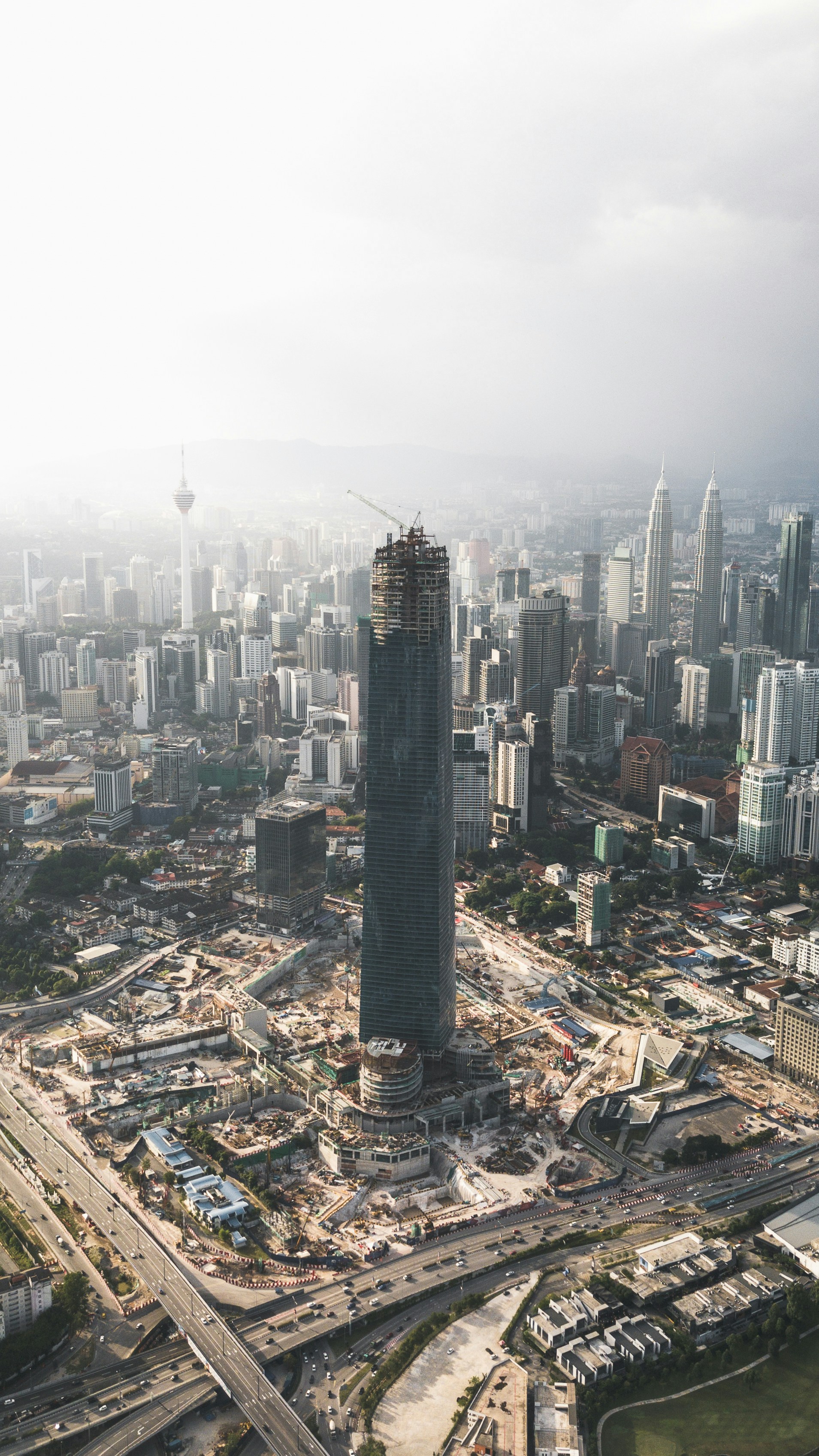 天际线、结构、城市景观、街道、无人机、天线、建筑、摩天大楼、塔楼、城市、建筑、办公室、俯瞰、建筑、薄雾、褪色、建筑、工作、商业、繁忙