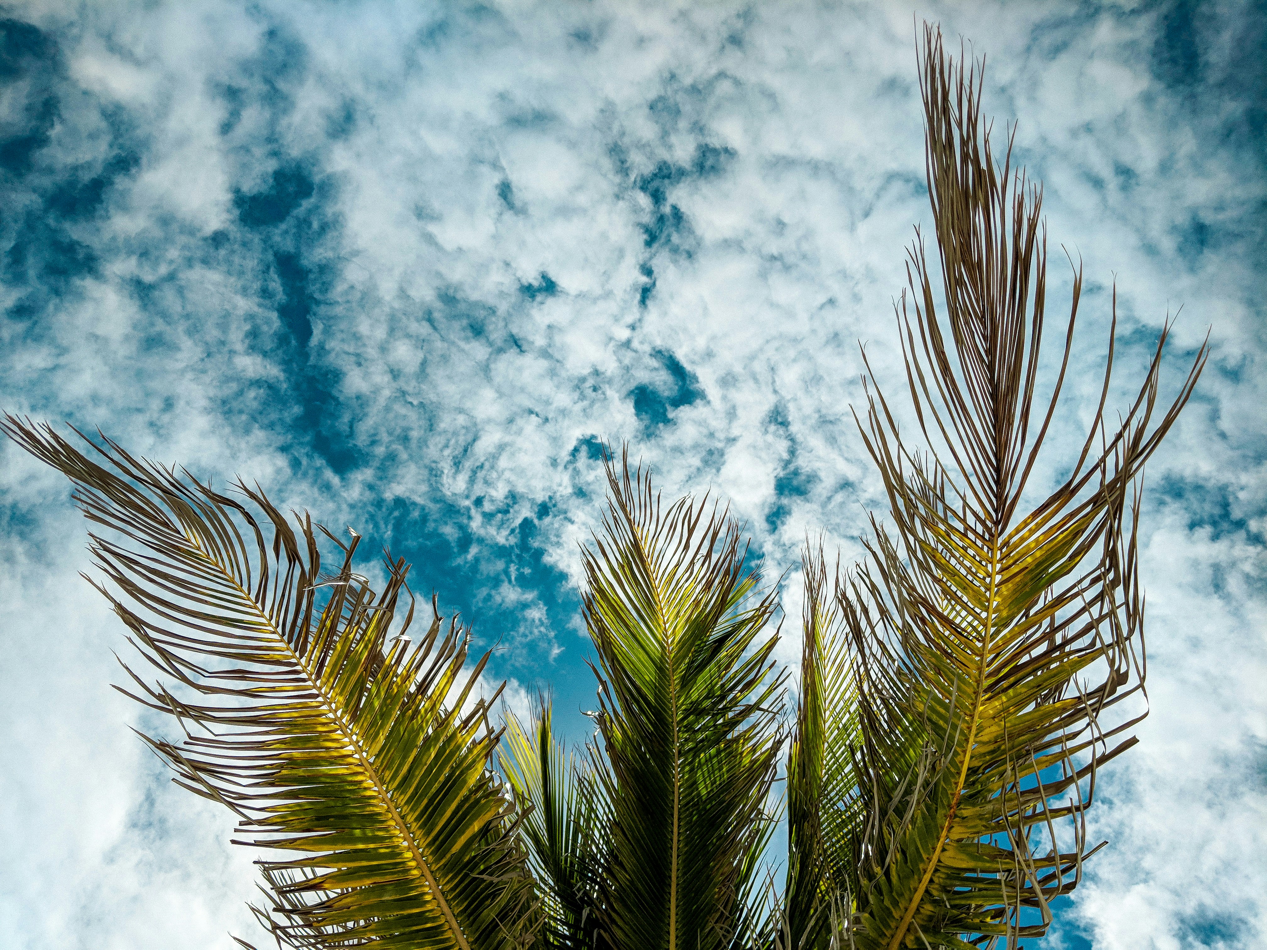 树,棕榈,天空,棕榈树,夏季,极小,群组,热带,叶状,自然,生命,生长,顶端,蓝色,透明,桌面,背景,植物区系