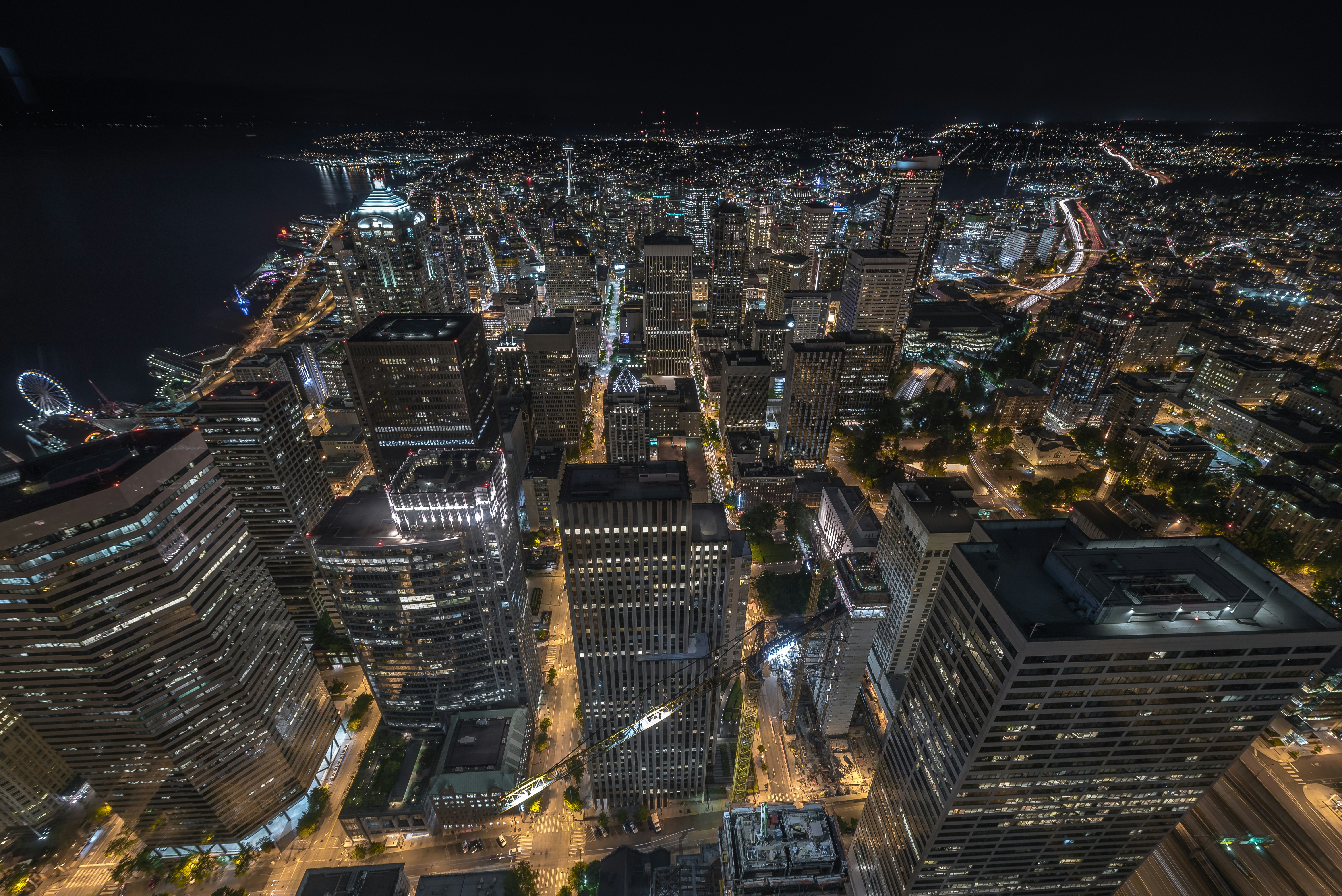 downtown,skyline,water,detroit,cloud,blue,river,sky,building,long exposure,night,light,blue],blue sky,city lights,overcast day