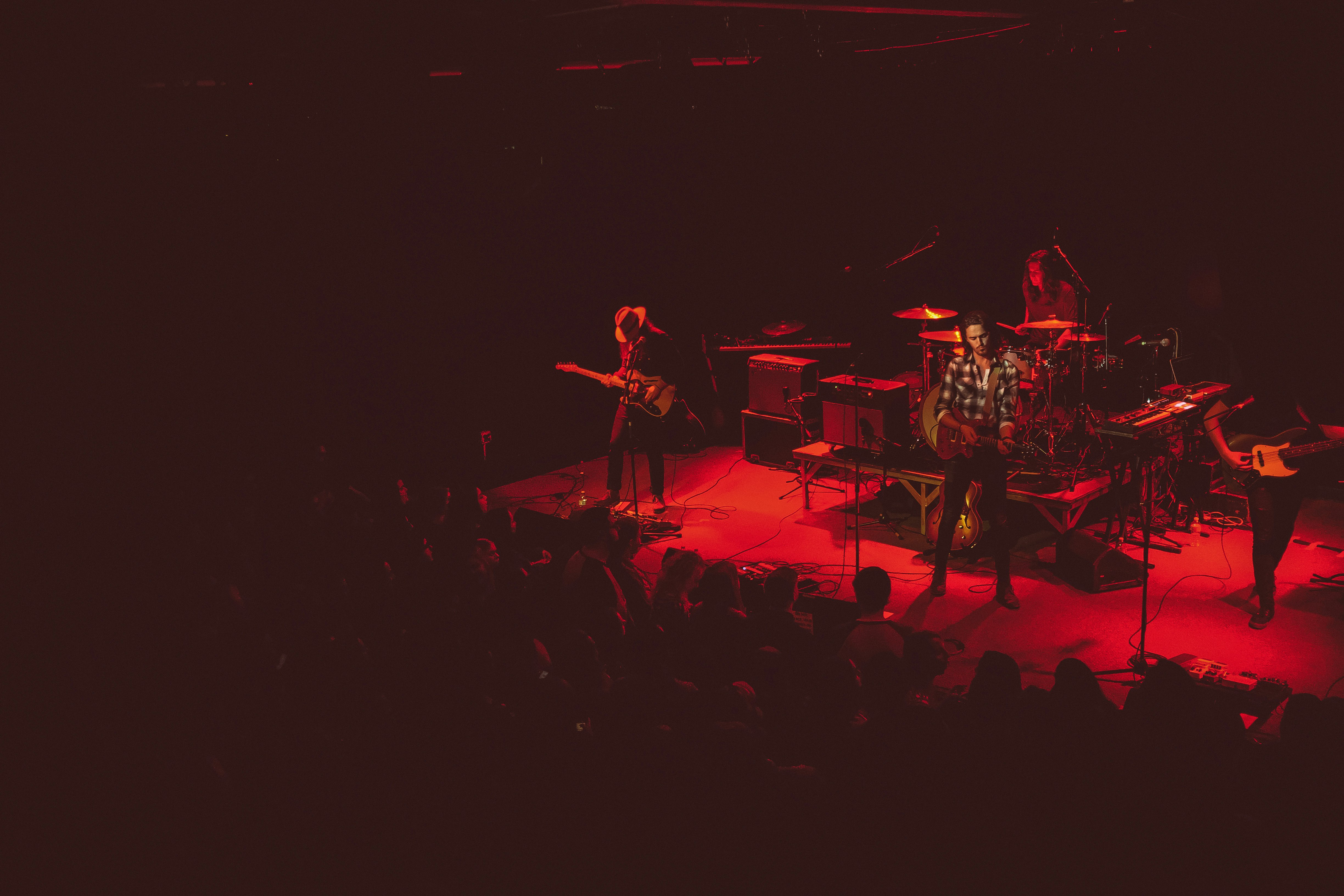 地铁音乐厅红灯舞台上演出的乐队