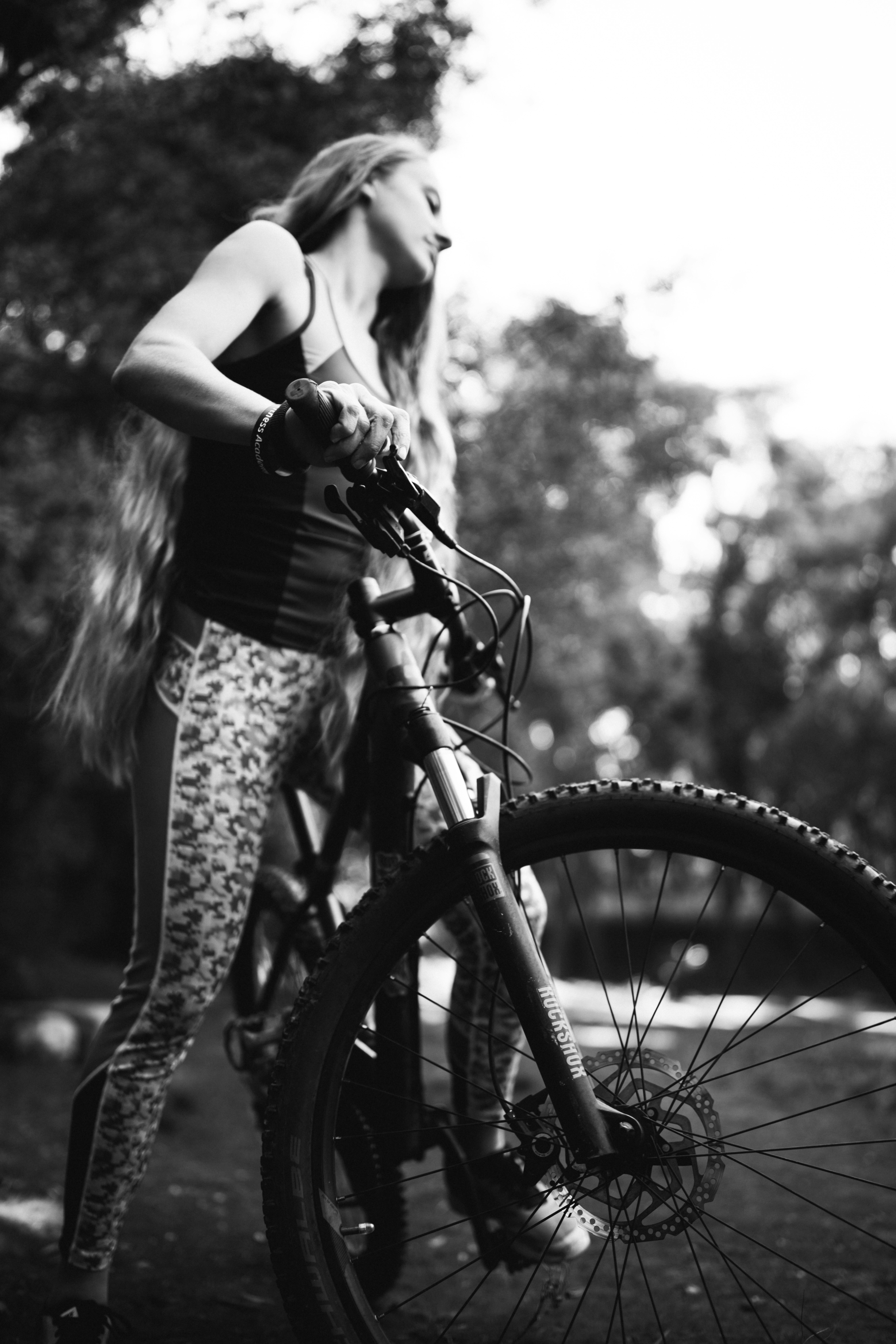 woman,female,girl,bike,mountain bike,wheel,black and white,tree,woodland,forest,long hair,active,exercise,sport,bnw,b&w,bicycle