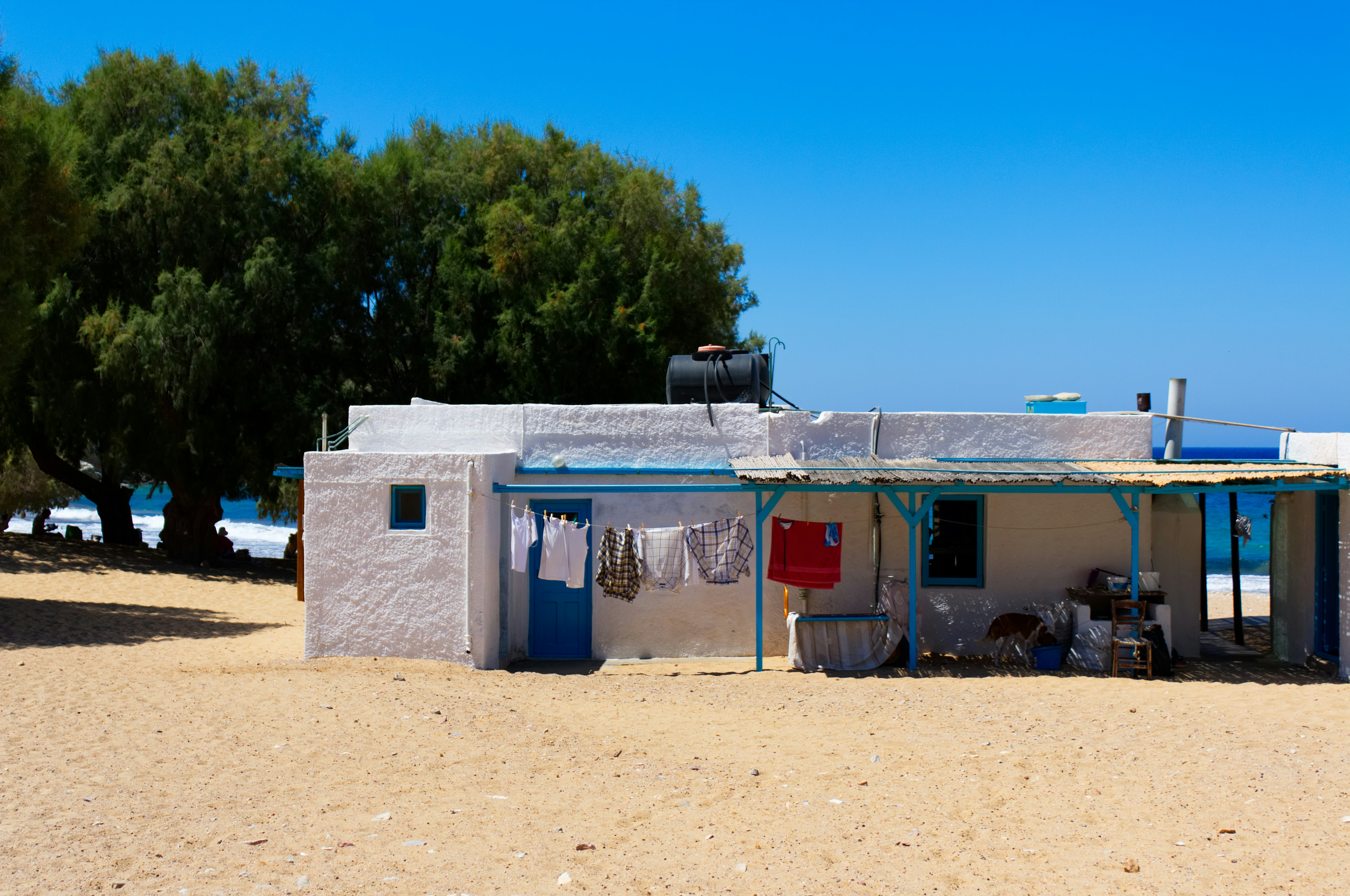 建筑、村庄、房屋、屋顶、树木、天空、洗涤线、建筑、海滩、酒馆、希腊