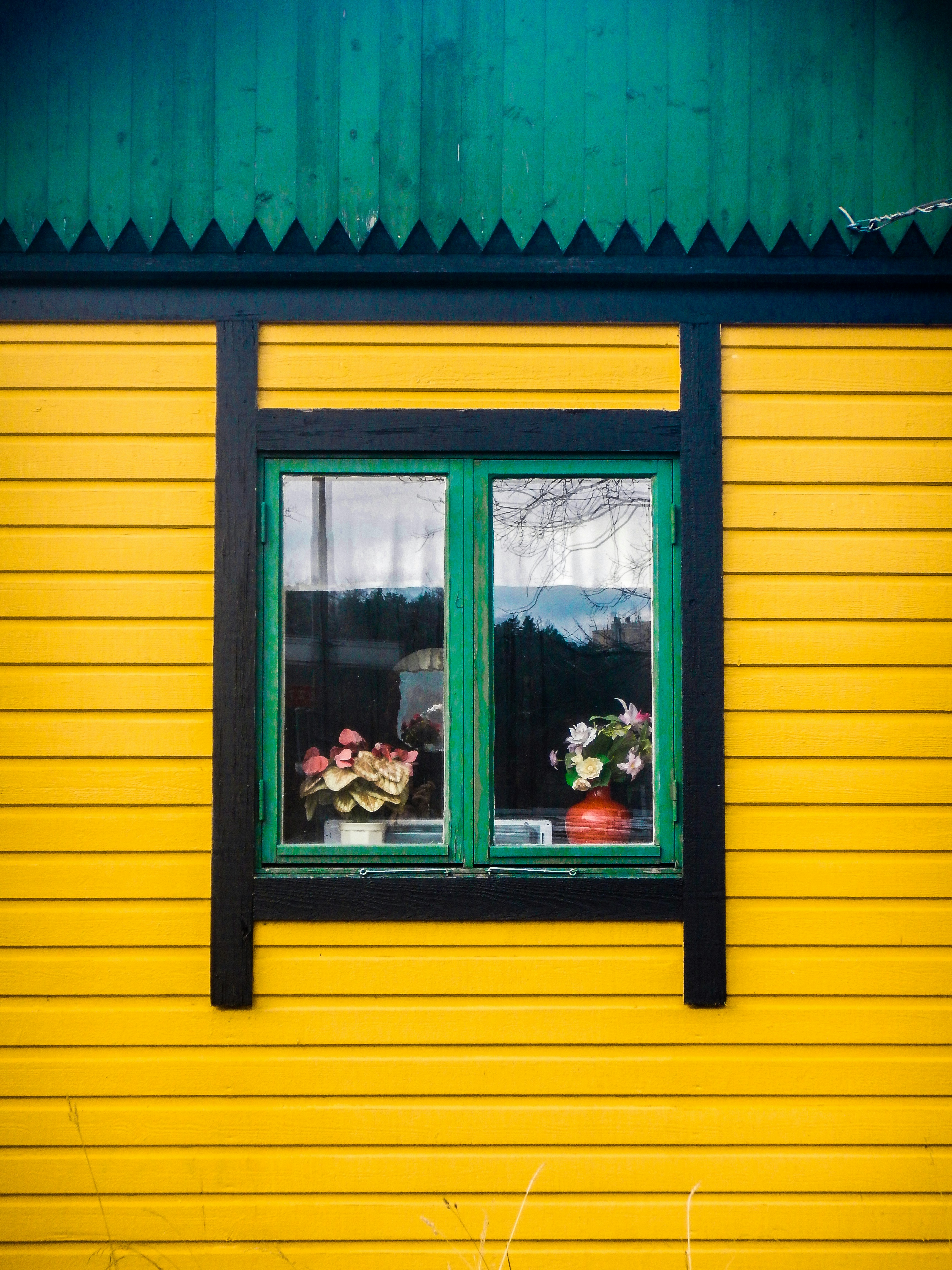 建筑,建筑,黄色,墙壁,木制,窗户,玻璃,反射,房子