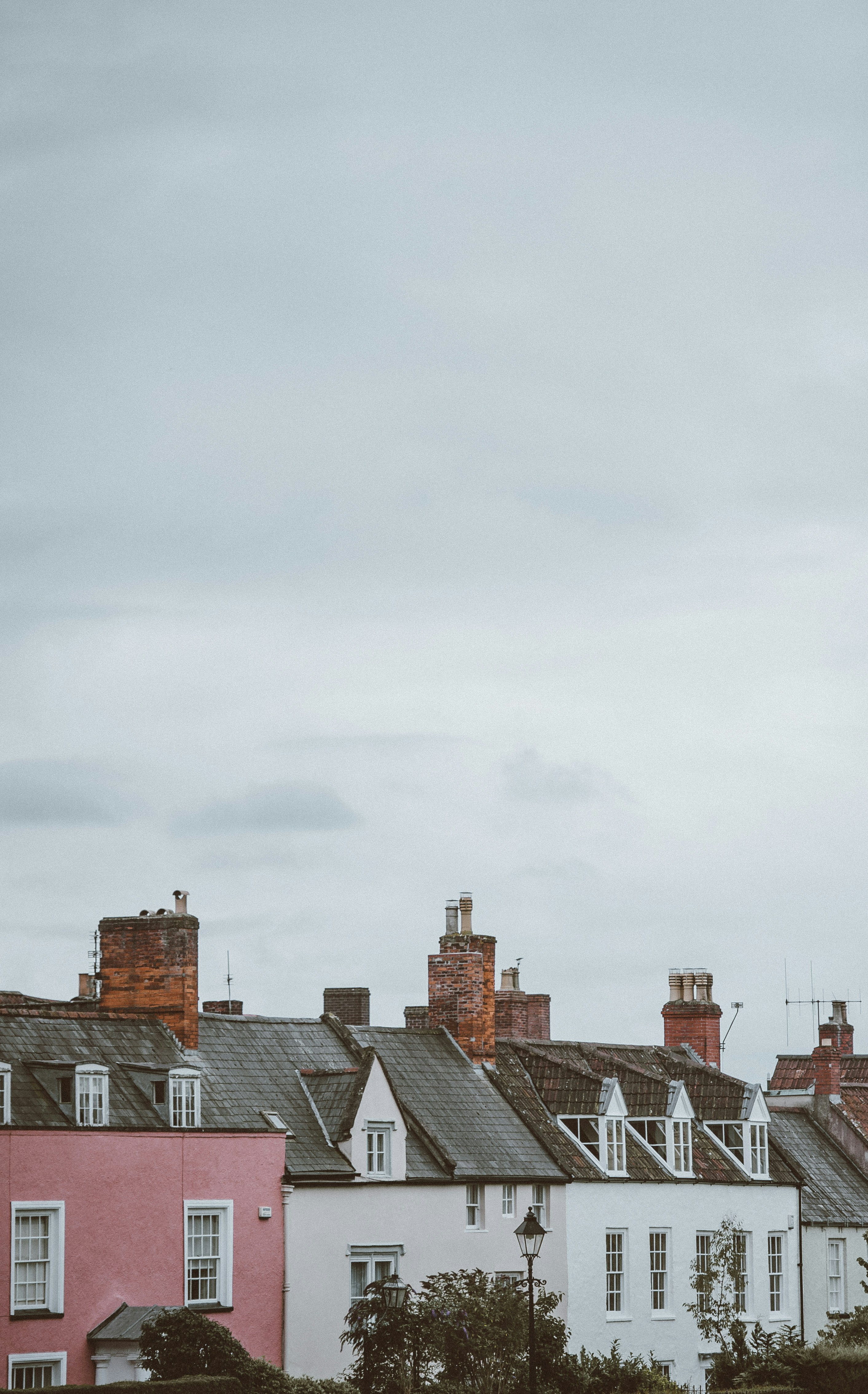 房子、城镇、村庄、屋顶、屋顶、烟囱、花园、云朵、天空