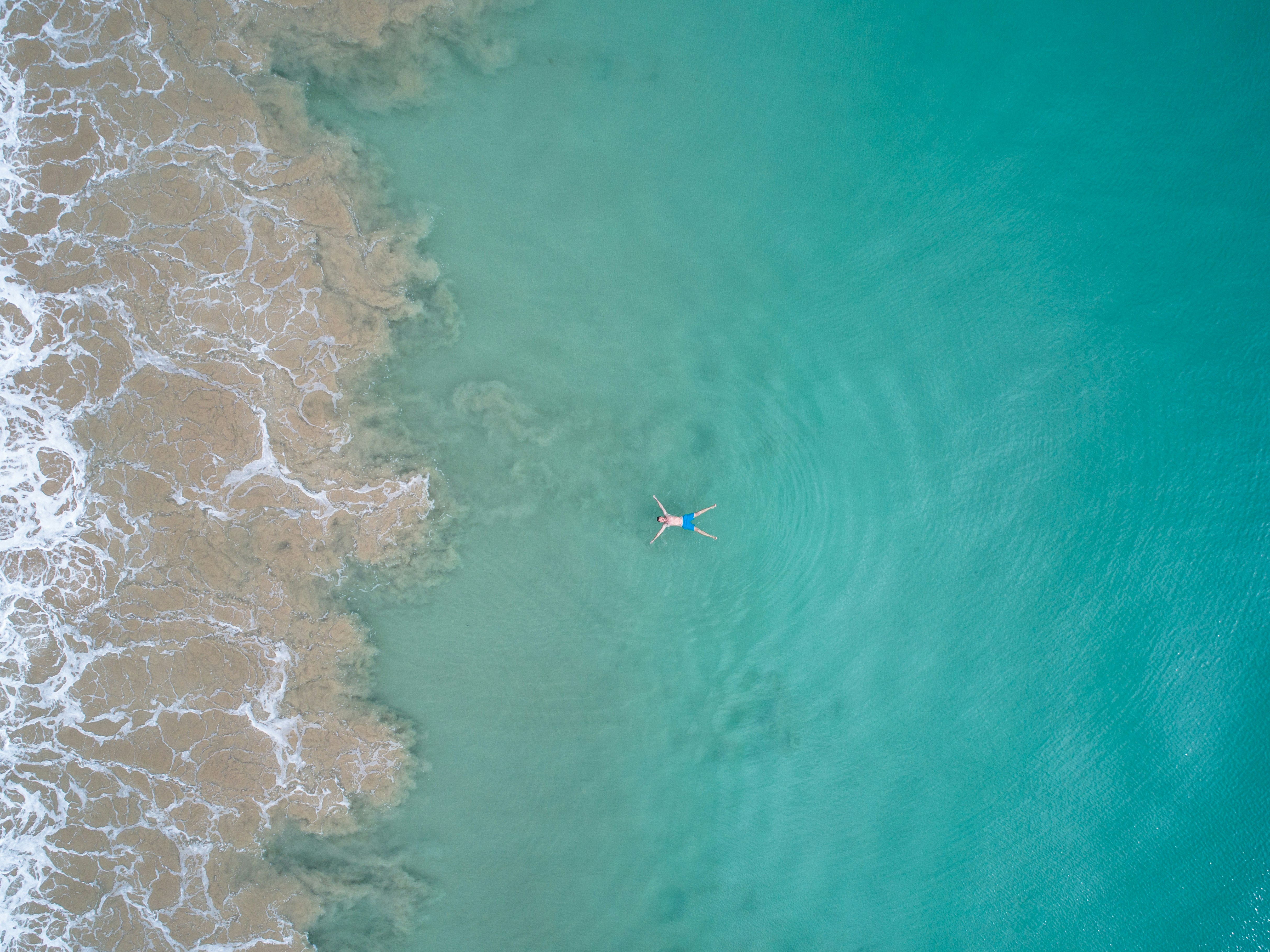 海洋,人,海景,海洋,游泳,波浪,展翅鹰,孤独,蓝色,人,无人机视图,男性,热带,假日,放松,最小,无人机,空中,大洋路,阿波罗小镇,夏天