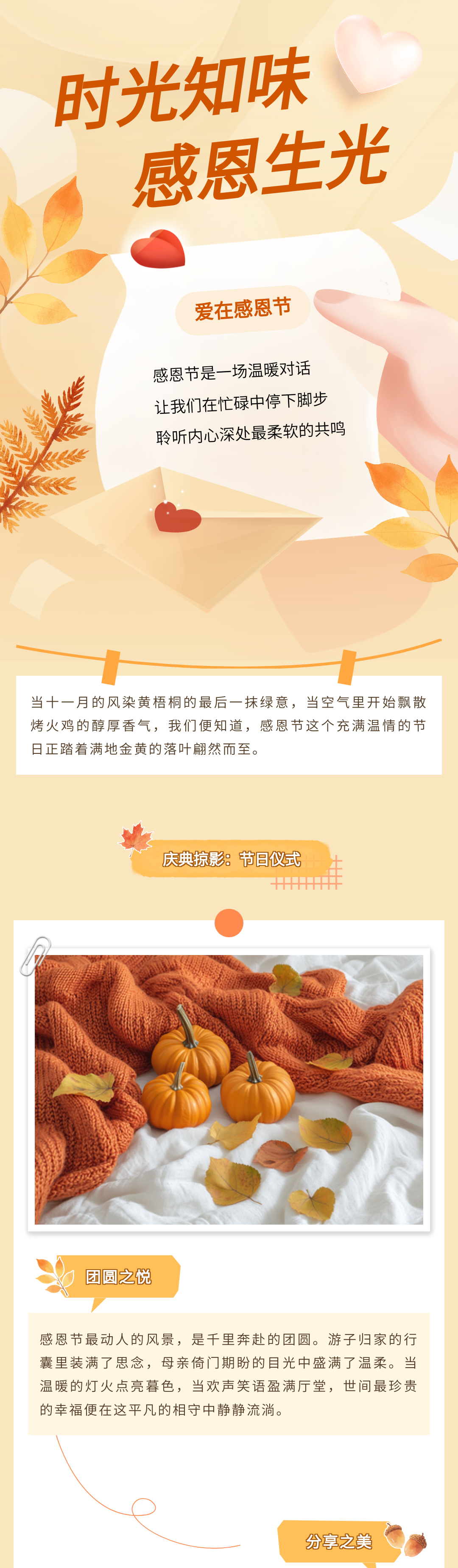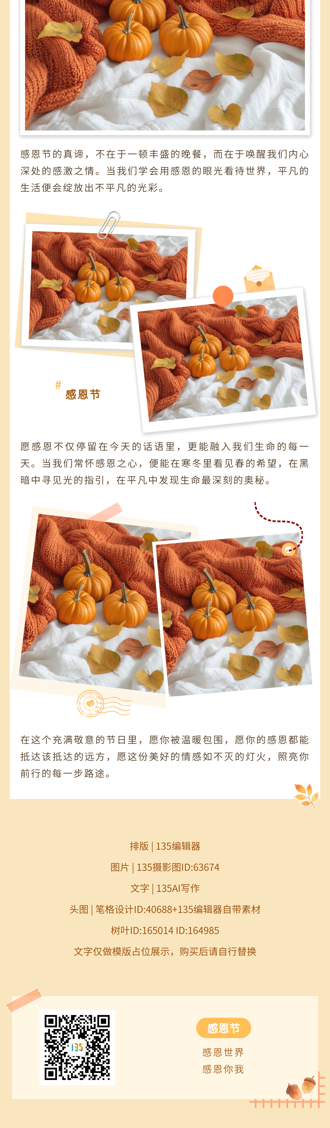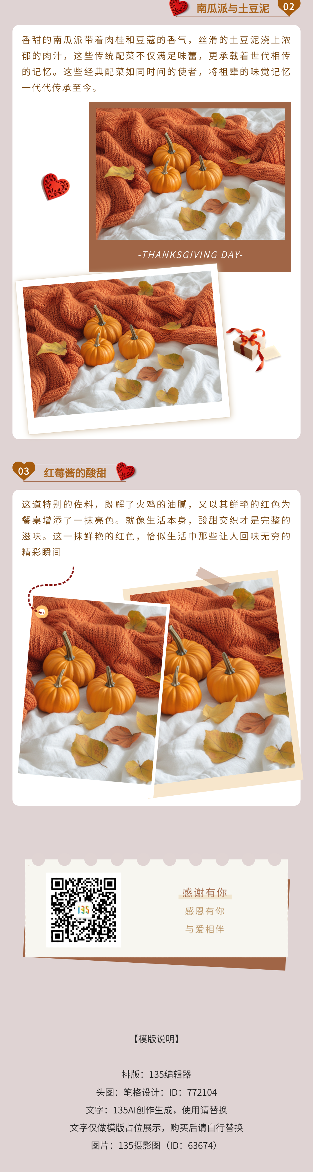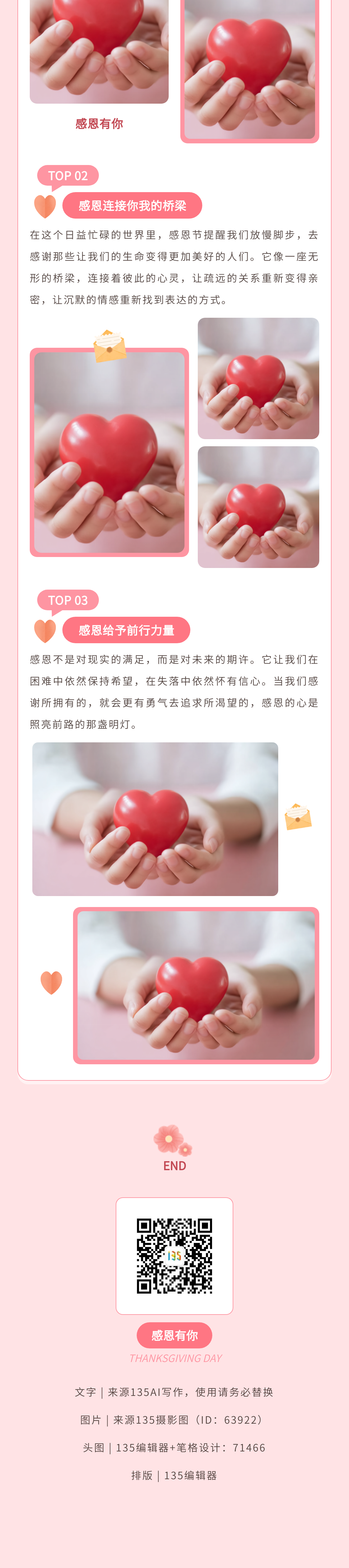 收获爱与感动,用设计表达感谢!135编辑器提供多款走心感恩节公众号模板,内含央视新闻温馨文案,助您打造情感真挚的节日推文,传递感恩力量。