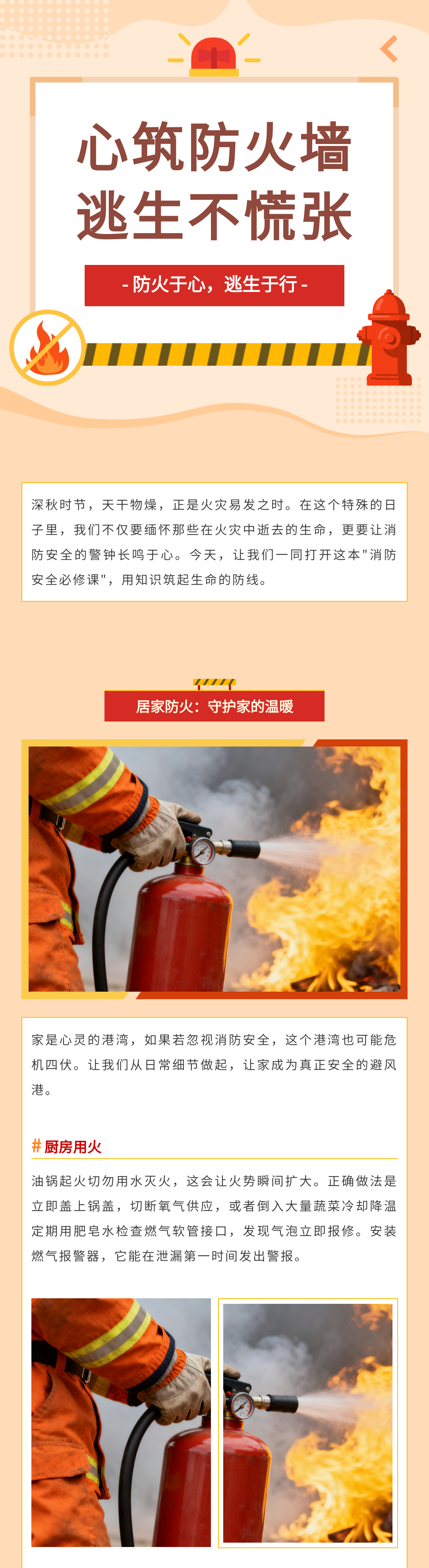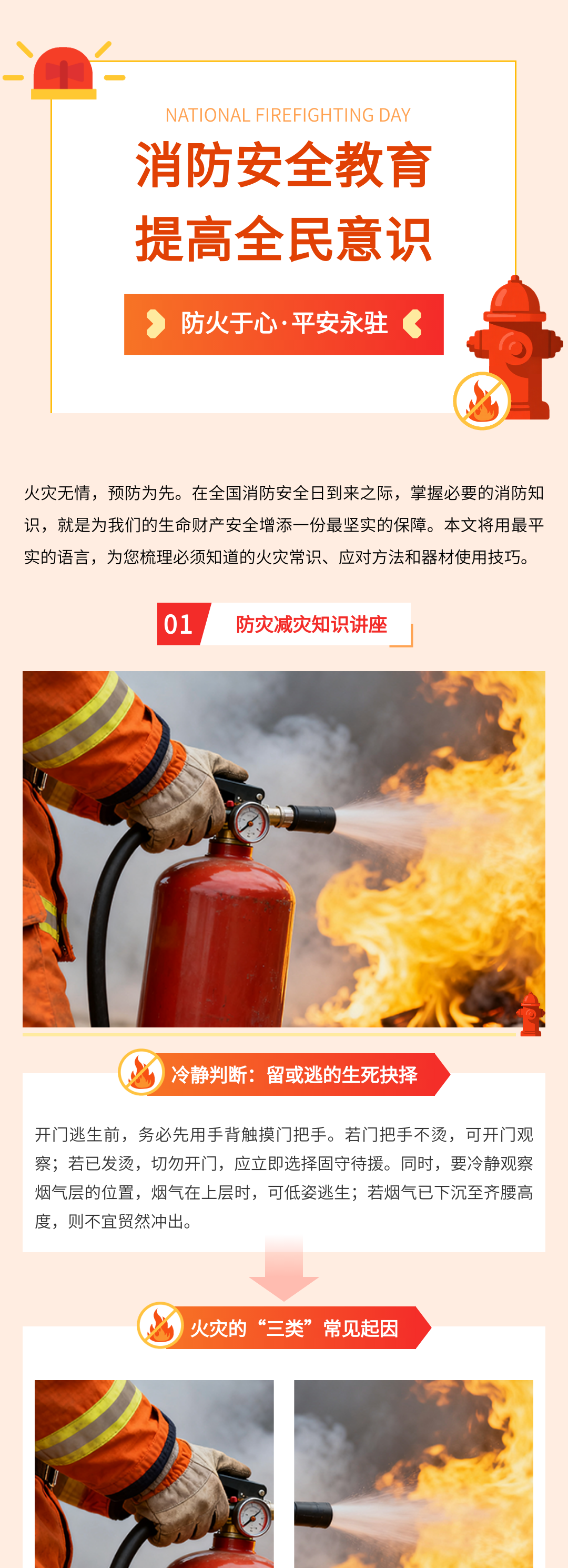 平凡生活中,火光撕裂宁静的时刻难想象,但潜藏的安全隐患提醒我们 “防患于未然”。全国消防安全日,让我们共学安全知识,掌握危急时自保救人能力,为生命筑防线。