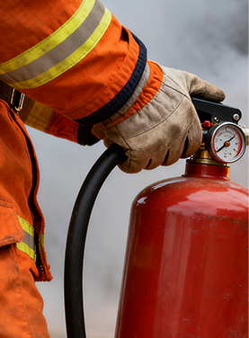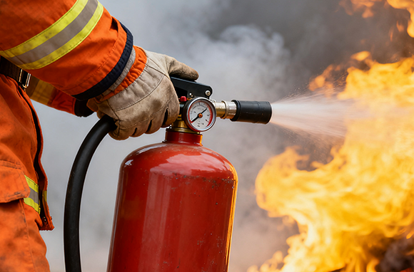 最后,用提瓶的那只手,用力向下压住灭火器的压把,驱动瓶内的灭火剂通过喷嘴,化作一道白色的射流,精准地覆盖于火焰根部,并在喷射过程中左右小幅扫射,直至确保所有火苗均已彻底熄灭,不复燃之可能。