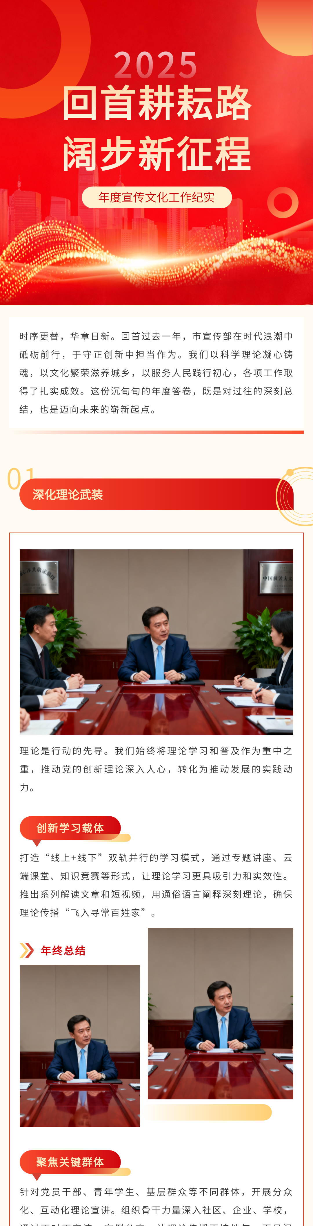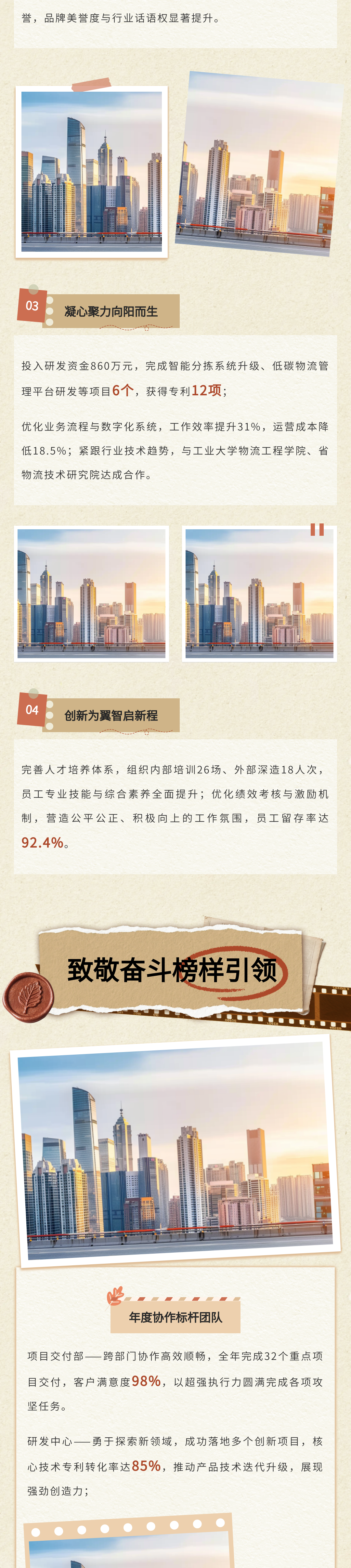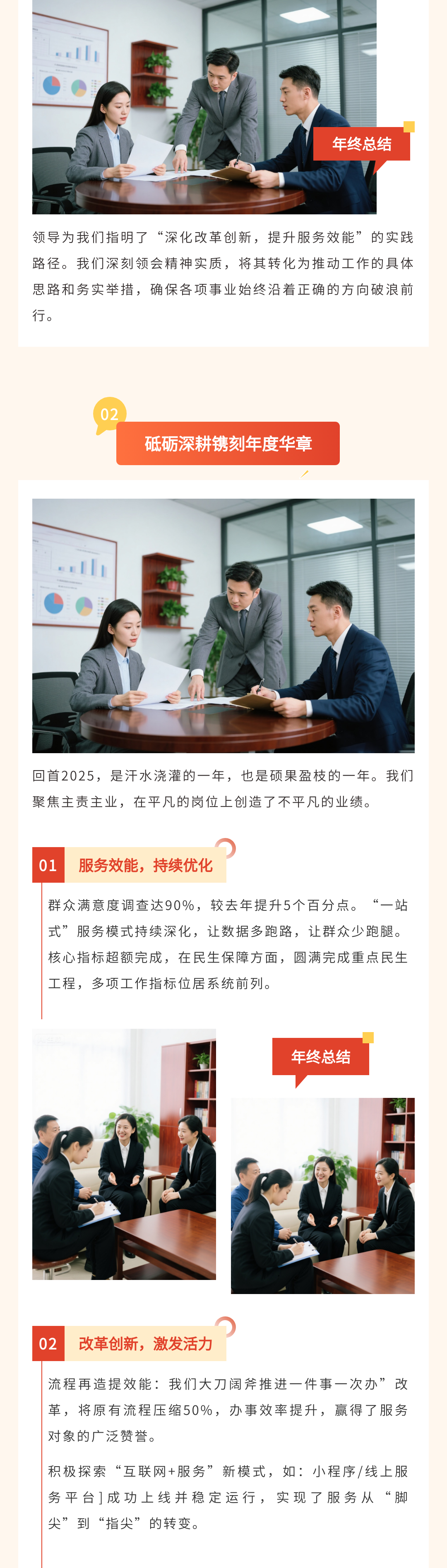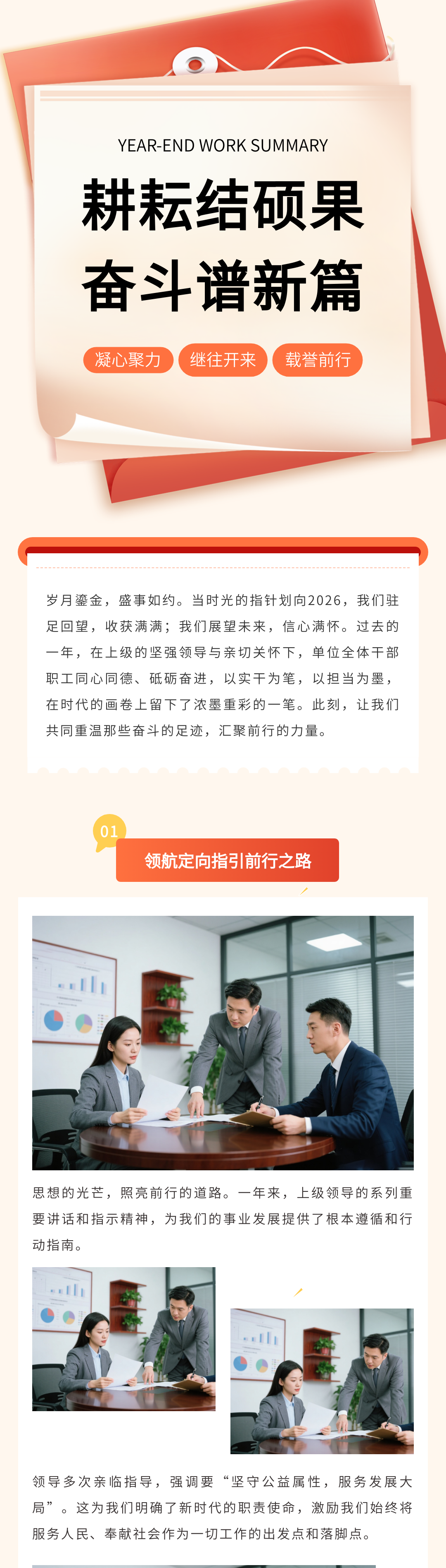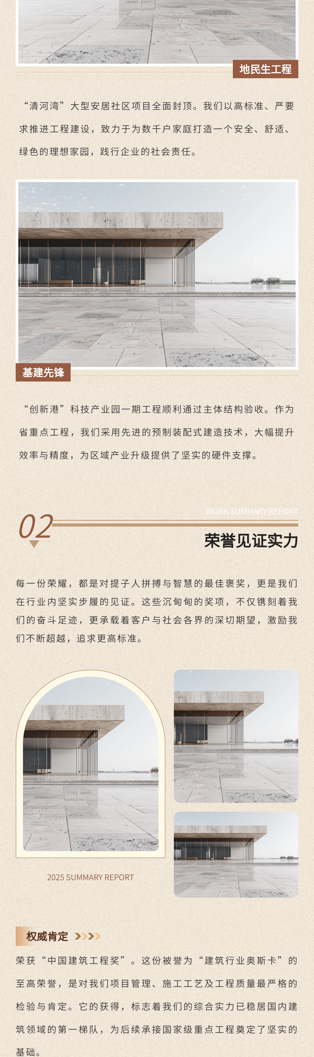01.在春秋的轮回中不懈拼搏,于笃行的道路上成就卓越。2025年转瞬即逝,我以坚定的步伐砥砺前行,积极迎接每一个挑战,勇于超越自我、开拓创新。在统筹兼顾的同时,又能精准发力,使各项工作均展现出新的亮点与成果。现对这一年来的工作进行如下总结……