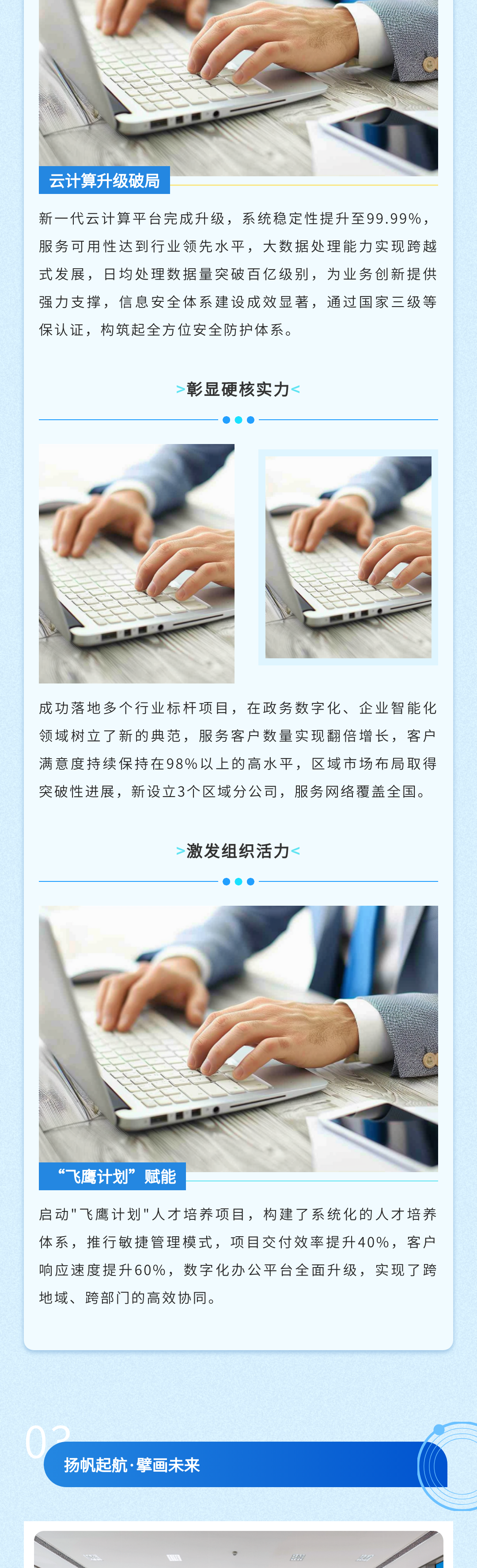 06.一年来,我们高举创新旗帜,突破技术壁垒,引领行业潮流;我们秉持质量理念,打造精品工程,赢得客户赞誉;我们践行服务宗旨,满足市场需求,树立企业形象。