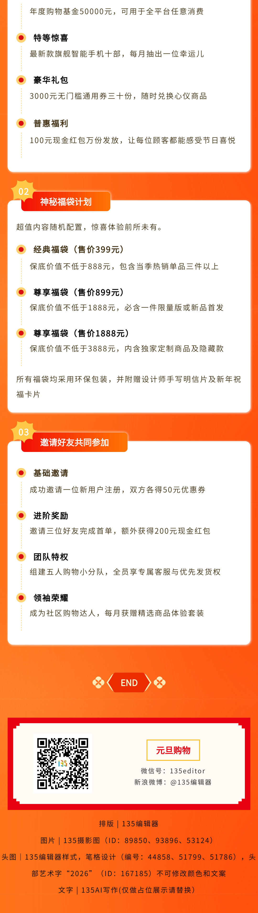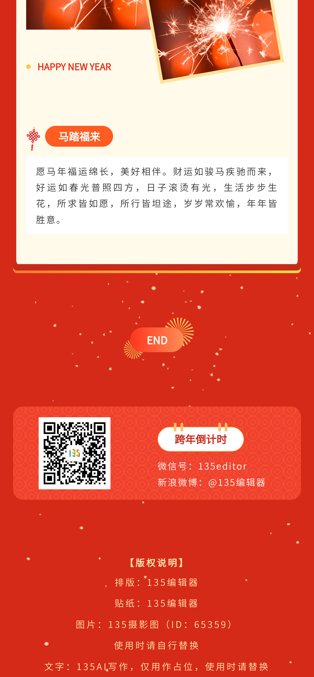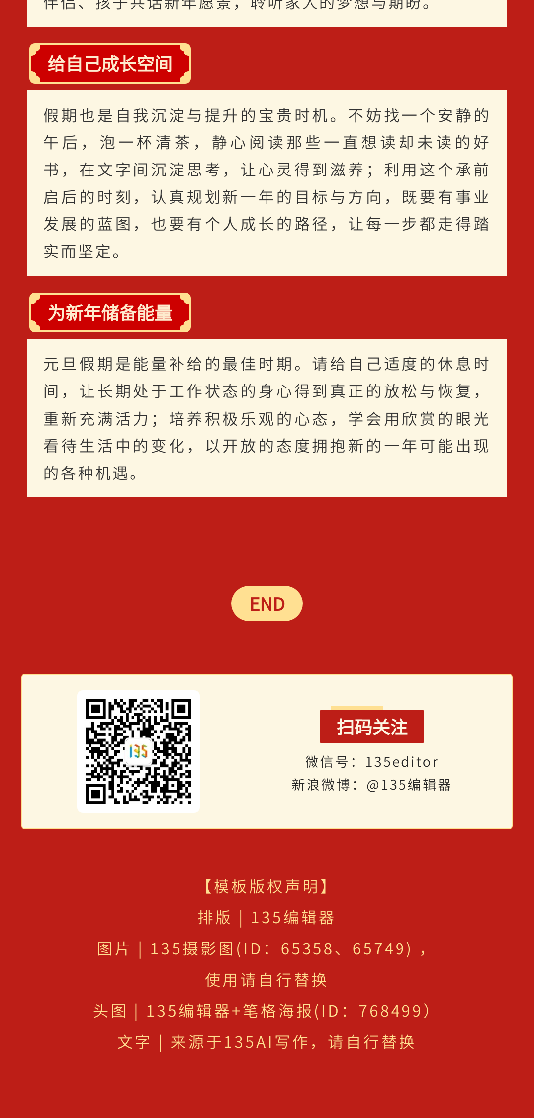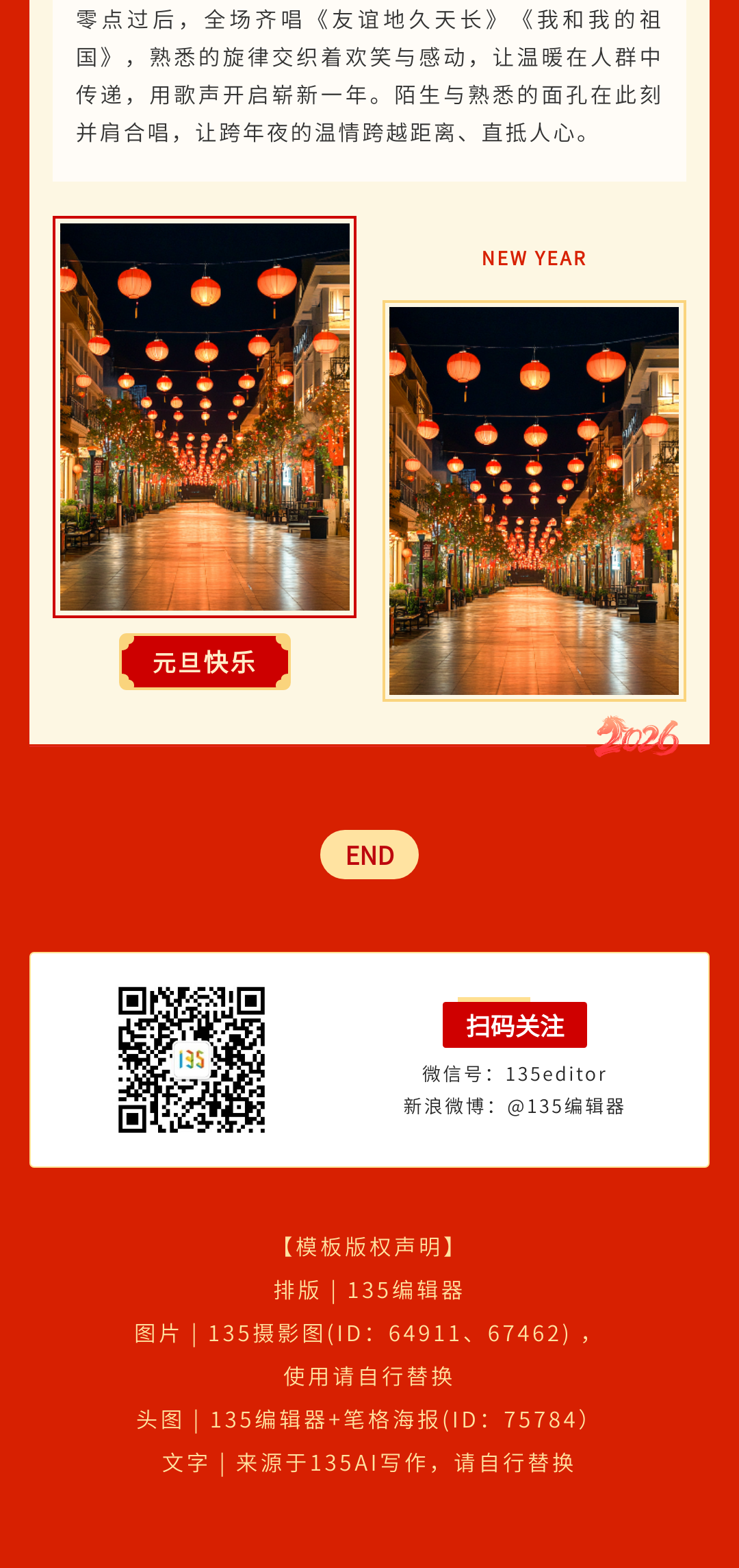 还在为元旦推文排版发愁?135编辑器整理2026年元旦新年祝福、放假通知、跨年活动、校园庆典及购物促销等多场景海量模板与SVG素材,输入模板ID即可快速套用,助你高效打造节日氛围,提升推文质感!
