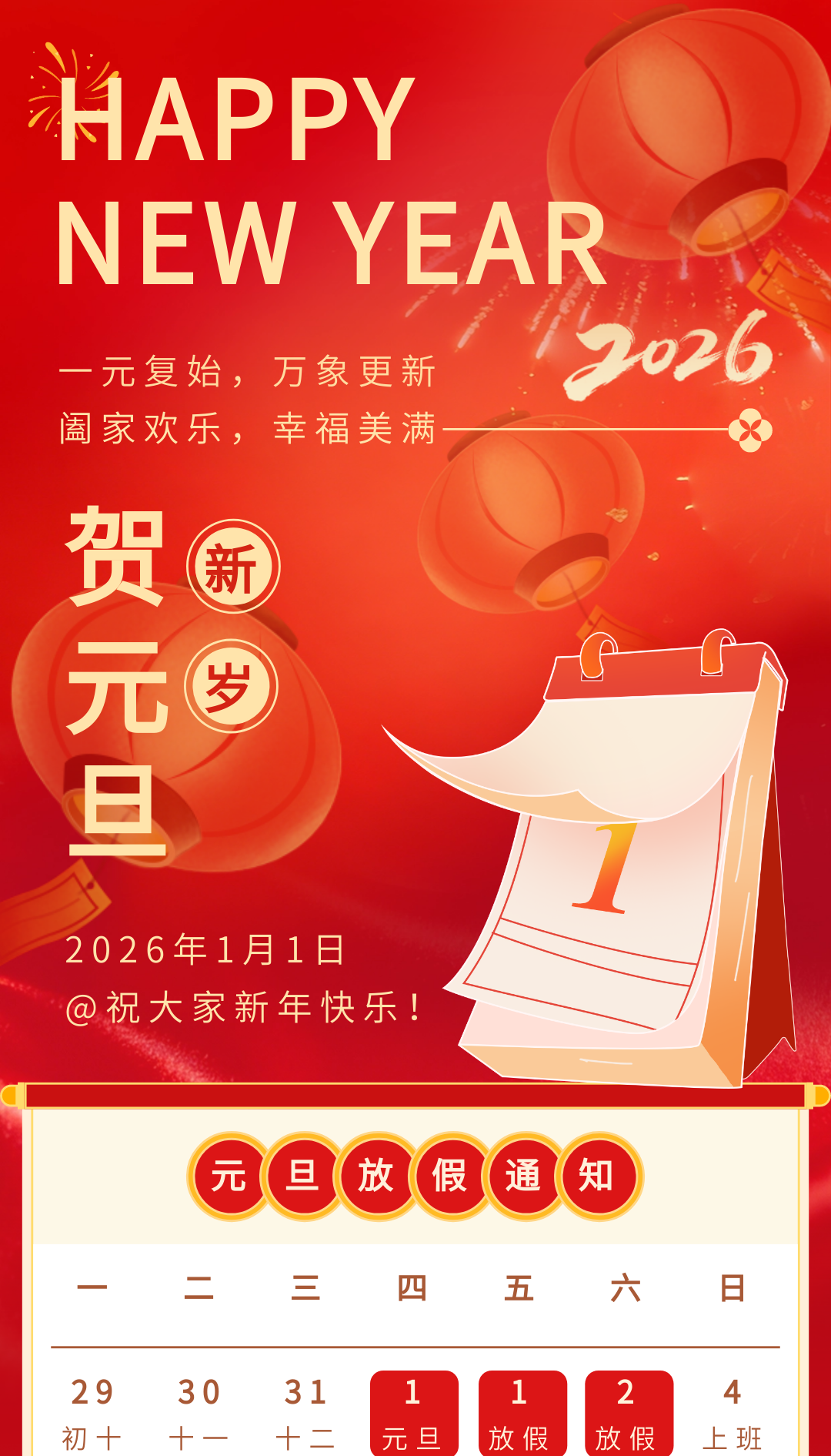 元旦推文排版模板大全-2026新年祝福/活动/通知素材一键套用