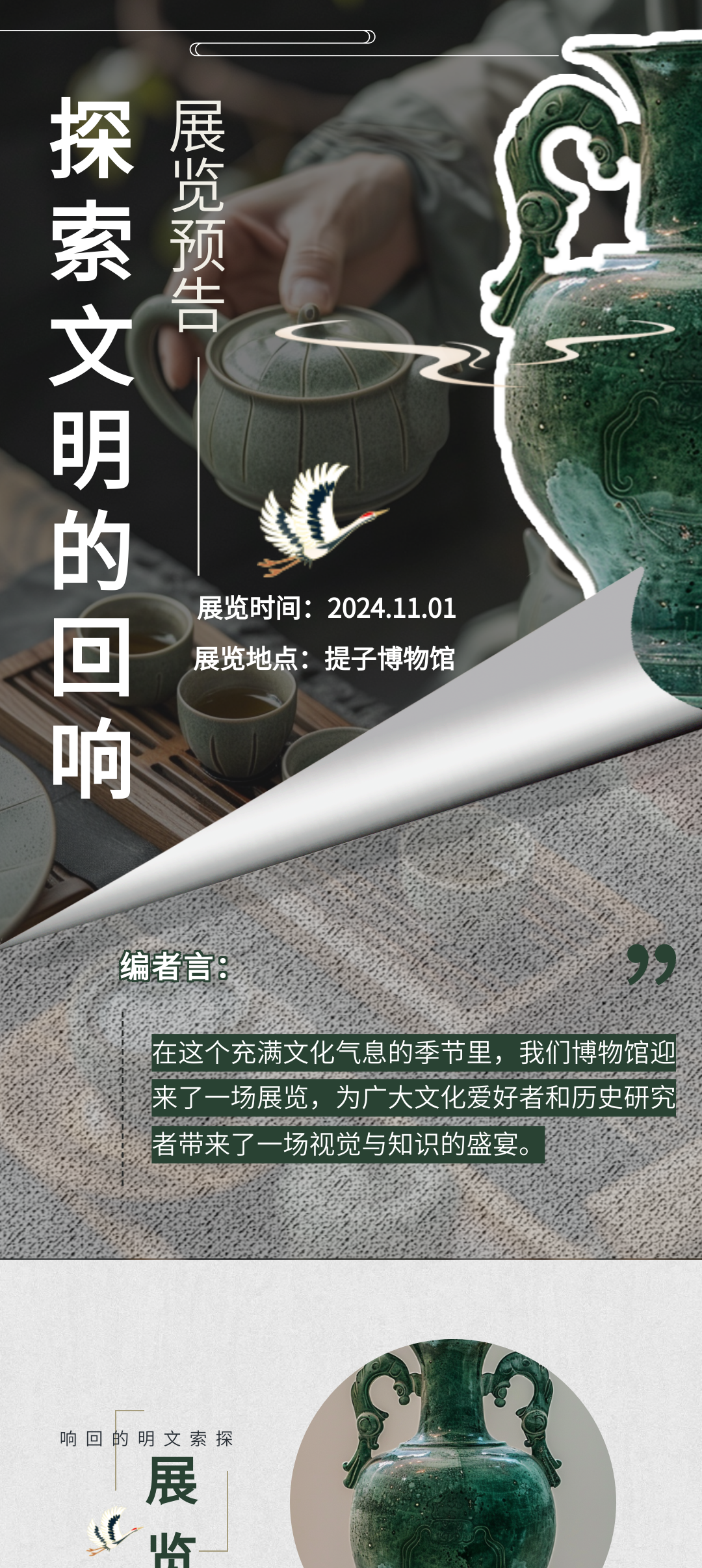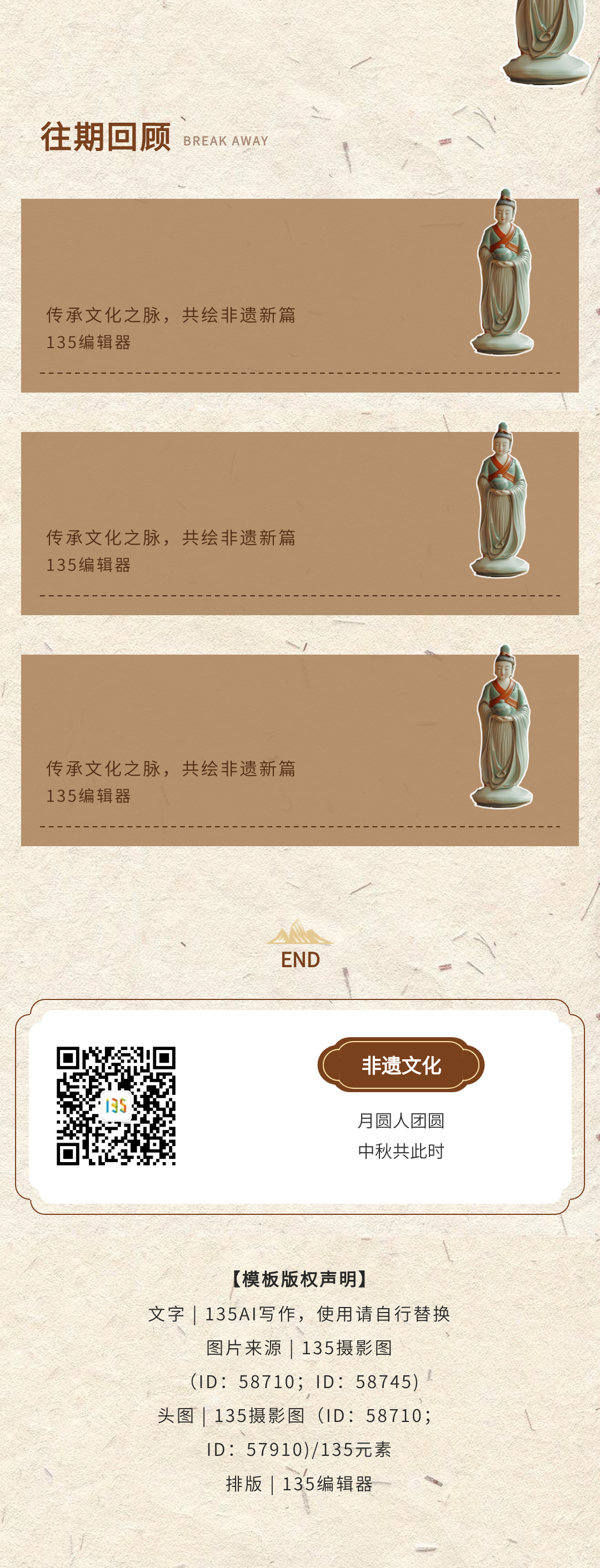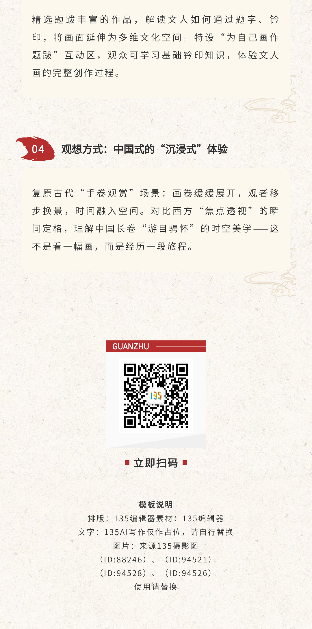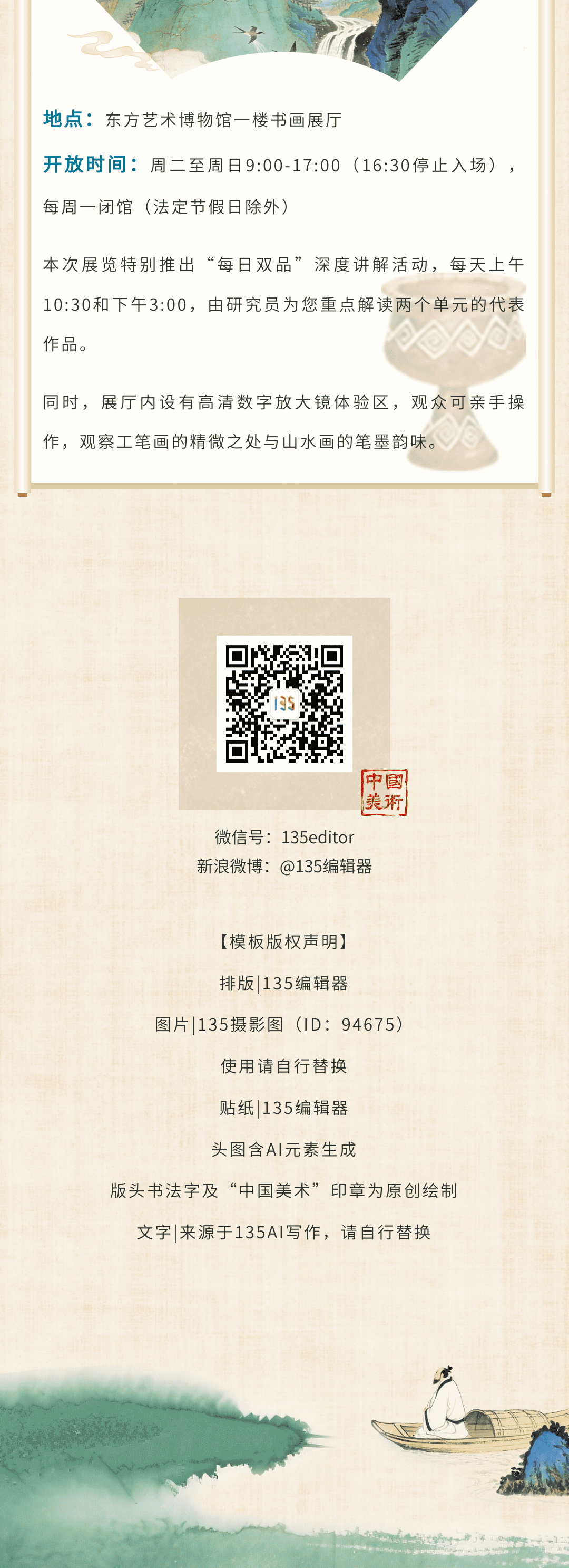 正在为博物馆展览、非遗活动或文物科普推文排版发愁?135编辑器为您精选多套专业博物馆模板,涵盖特展、书画、非遗、研学等全场景。一键套用,轻松制作出惊艳的公众号推文,提升文化宣传质感。立即搜索模板ID,获取专属排版方案!