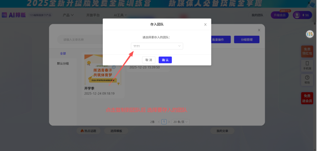 相信不少团队在排版协作时,都有过这样的困扰:精心排好的文章要反复导出文件同步给同事,稍不注意就遗漏最新版本;跨岗位沟通修改意见滞后又低效;优质的排版作品散在各个成员的个人账号里,难以共享复用,新人上手也缺乏统一参考只能慢慢摸索。为解决这些团队协作痛点,我们带来了重磅升级——135AI排版团队版正式上线!无需复杂操作,一个核心功能就能打通团队排版协作全链路,下面就为大家逐一拆解解决方案。