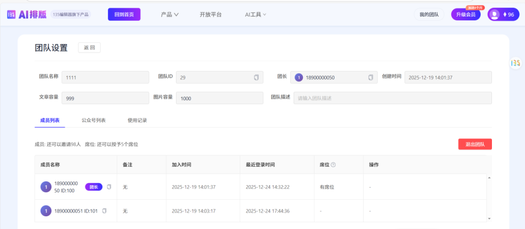 135AI排版团队版设置明确的席位权限机制,核心围绕团队资产的集中管理、安全转让与无缝继承,兼顾管理灵活性与协作稳定性,具体权限划分如下:
