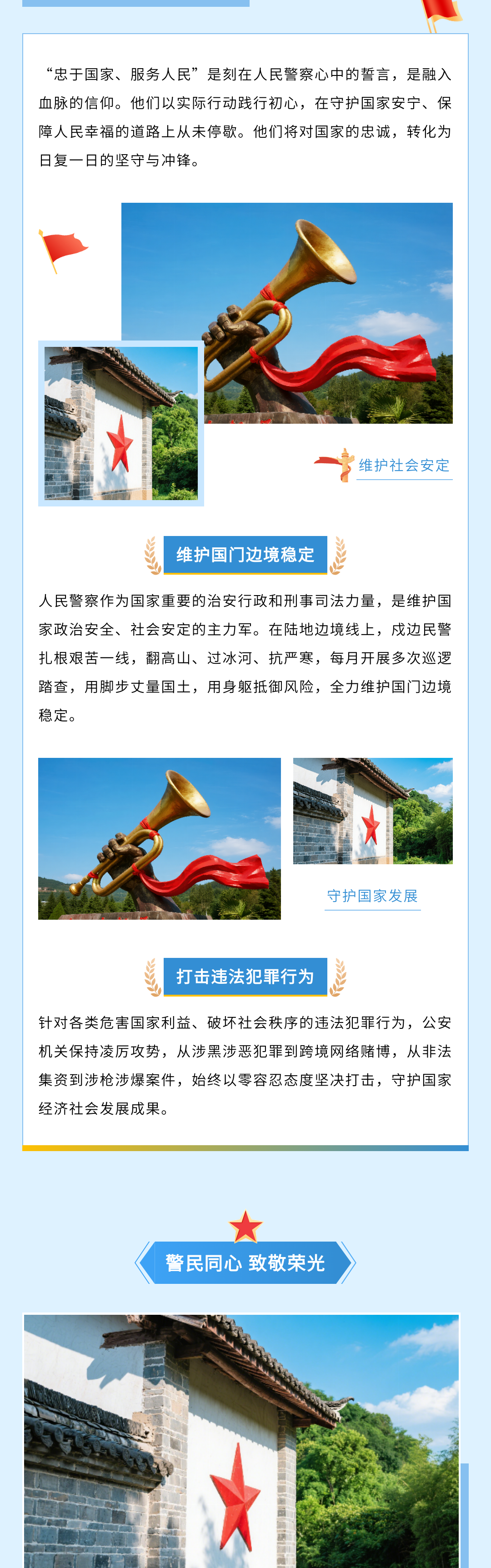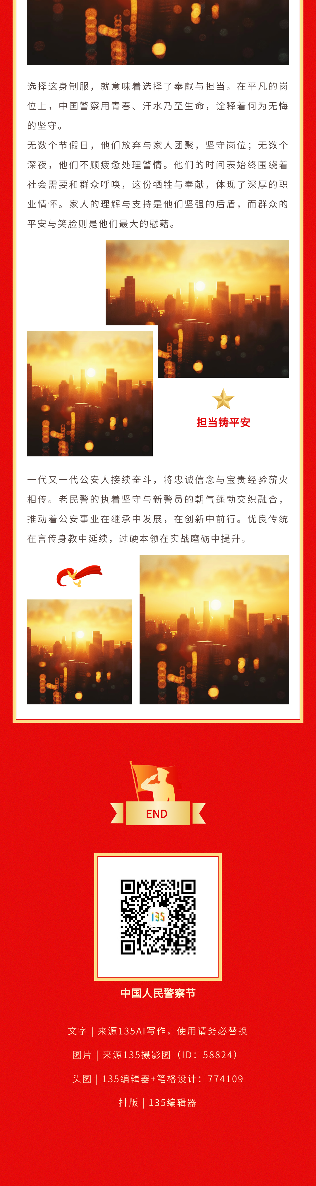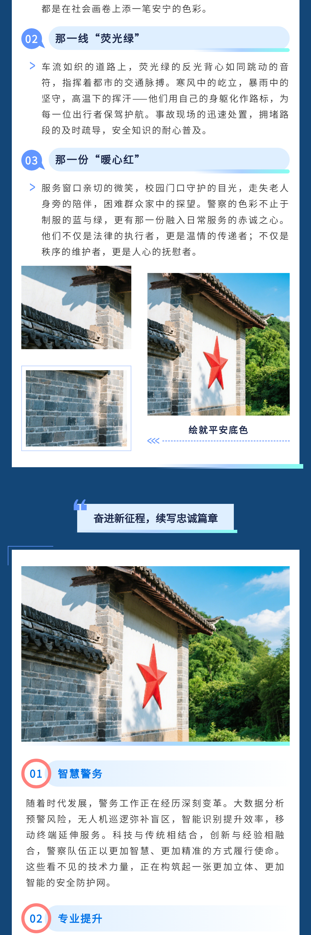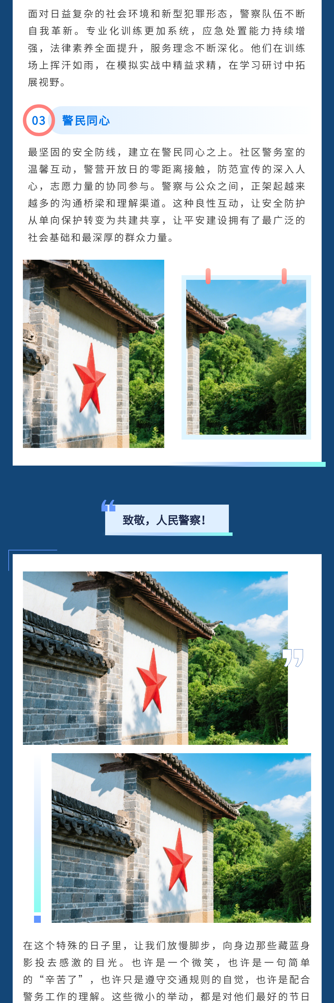 “铁血丹心铸警魂,忠诚为民谱华章。人民警察保平安,万家灯火守安宁。”
