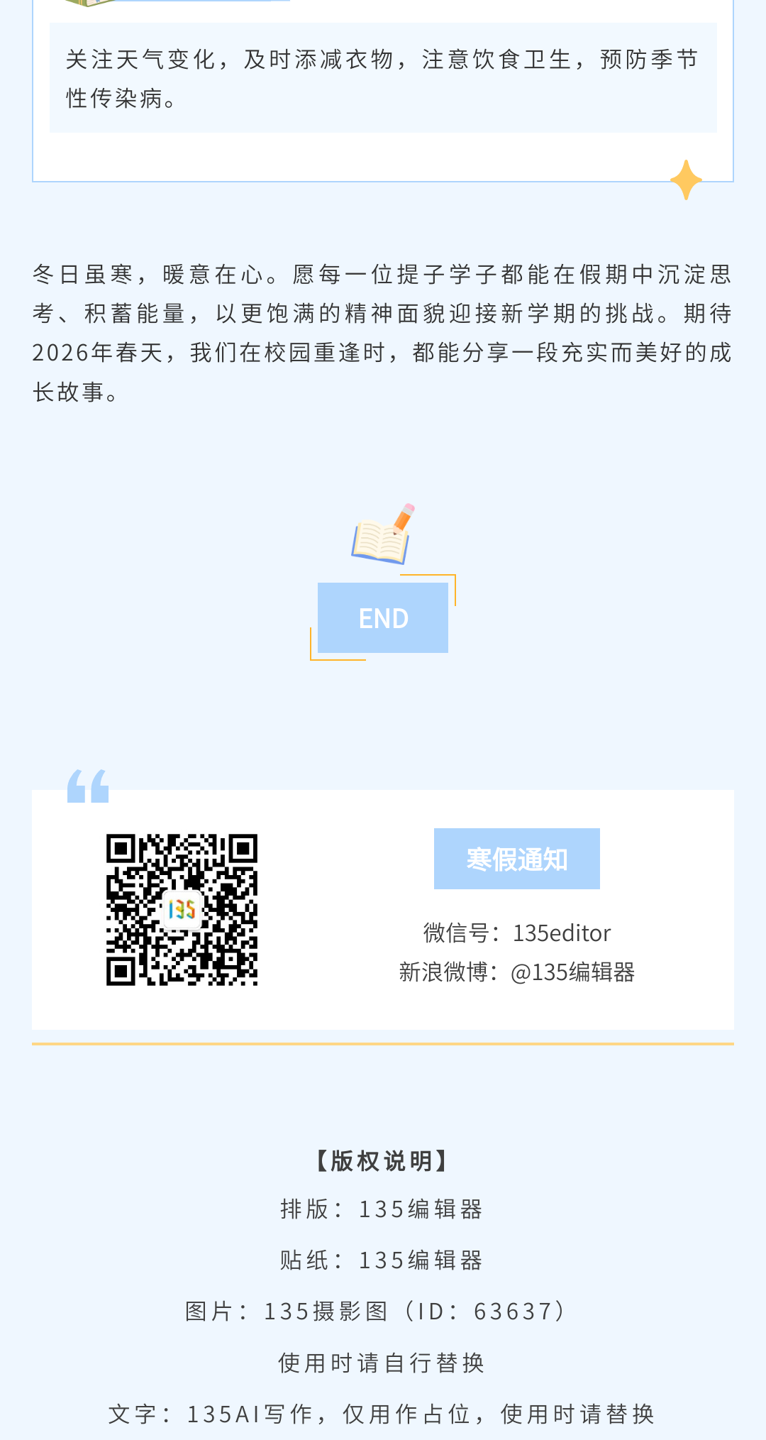 幼儿园到中学都适用!8款寒假通知公众号模板(附ID直接套用)